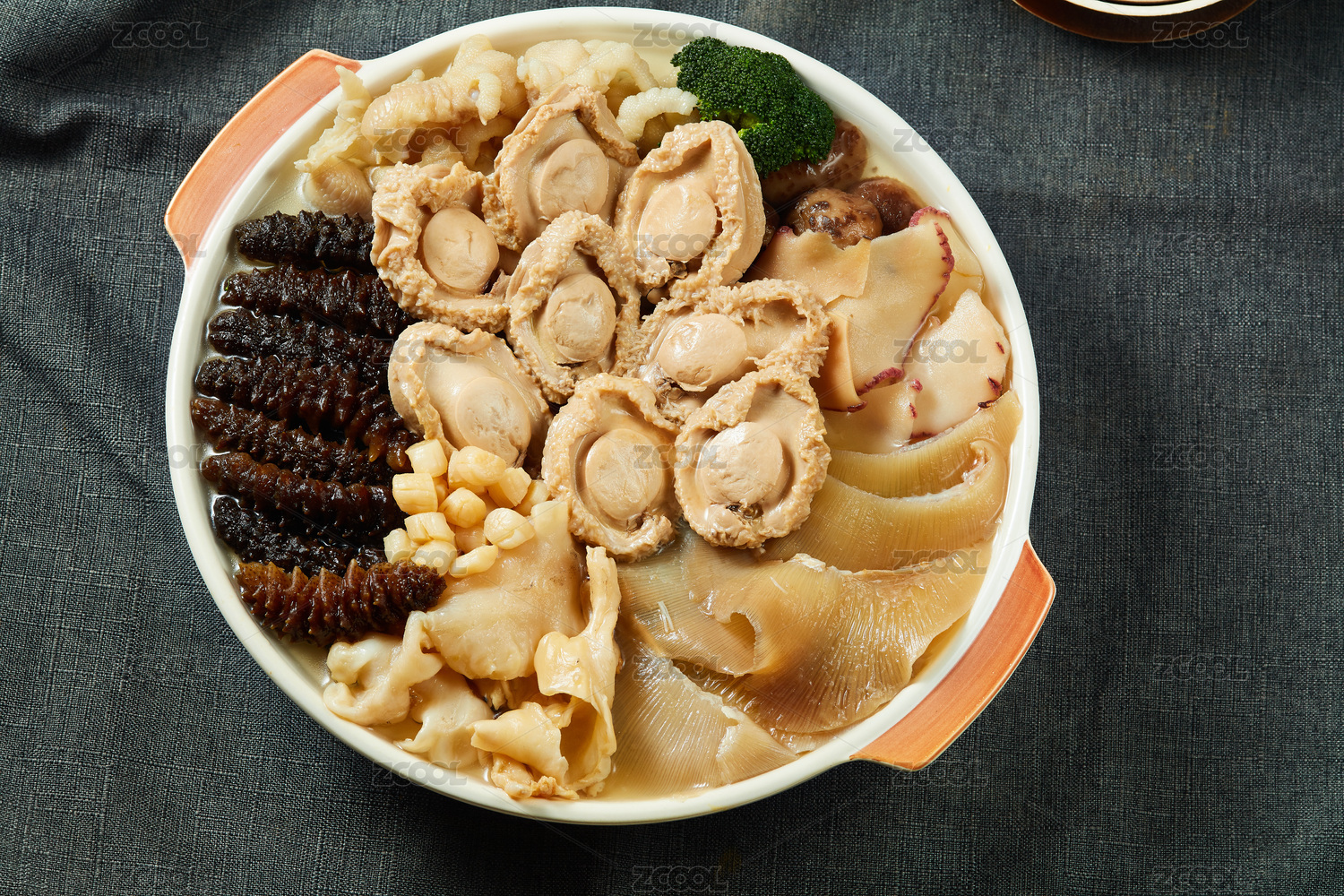 鲍鱼海螺肉海参金汤捞饭