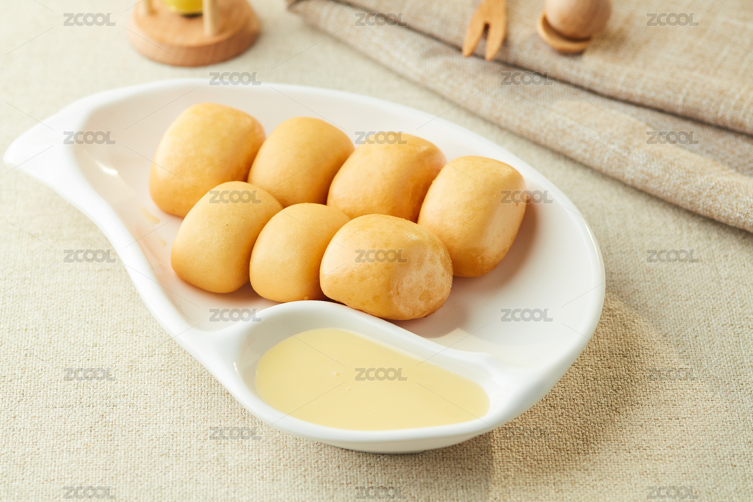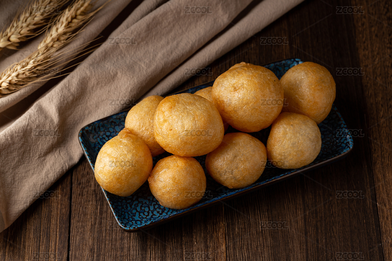 桌面上的盘子里的美味可口的地瓜芝士丸