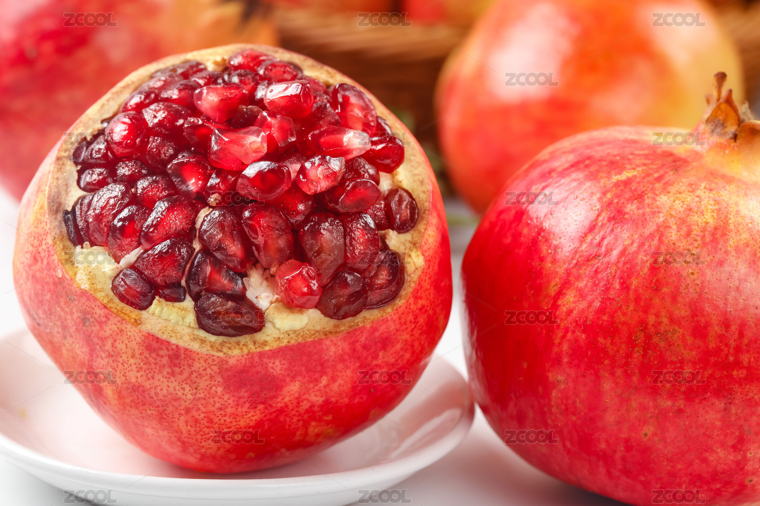 白底上的新鲜红皮石榴
