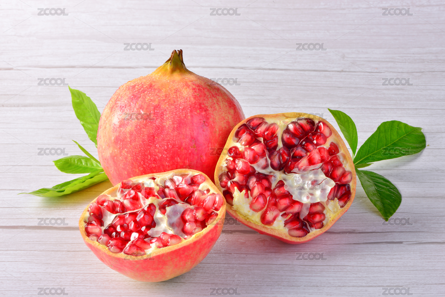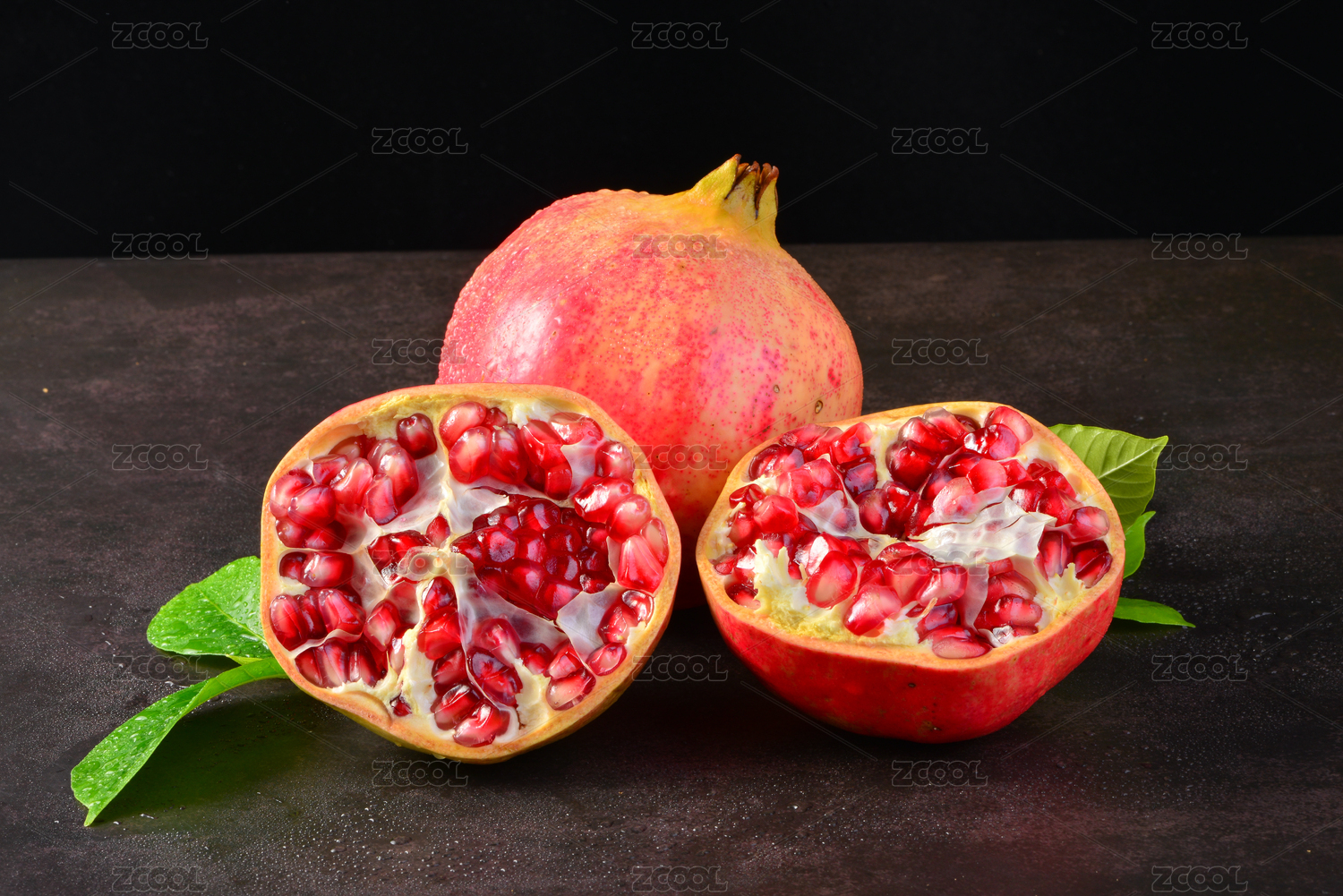 软籽石榴后用绿叶装饰