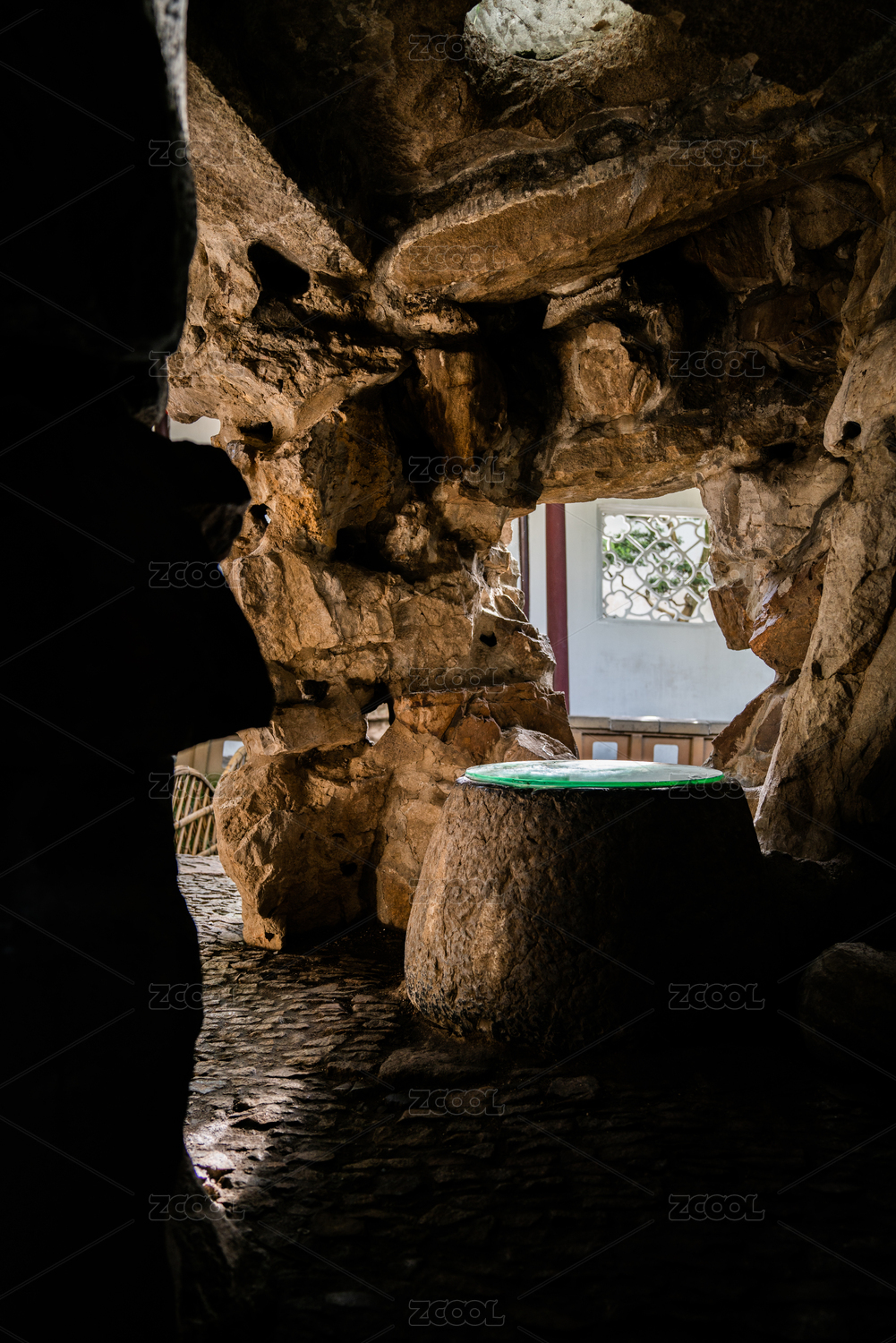 从岩洞内看向洞外,中国广西柳州那社洞穴