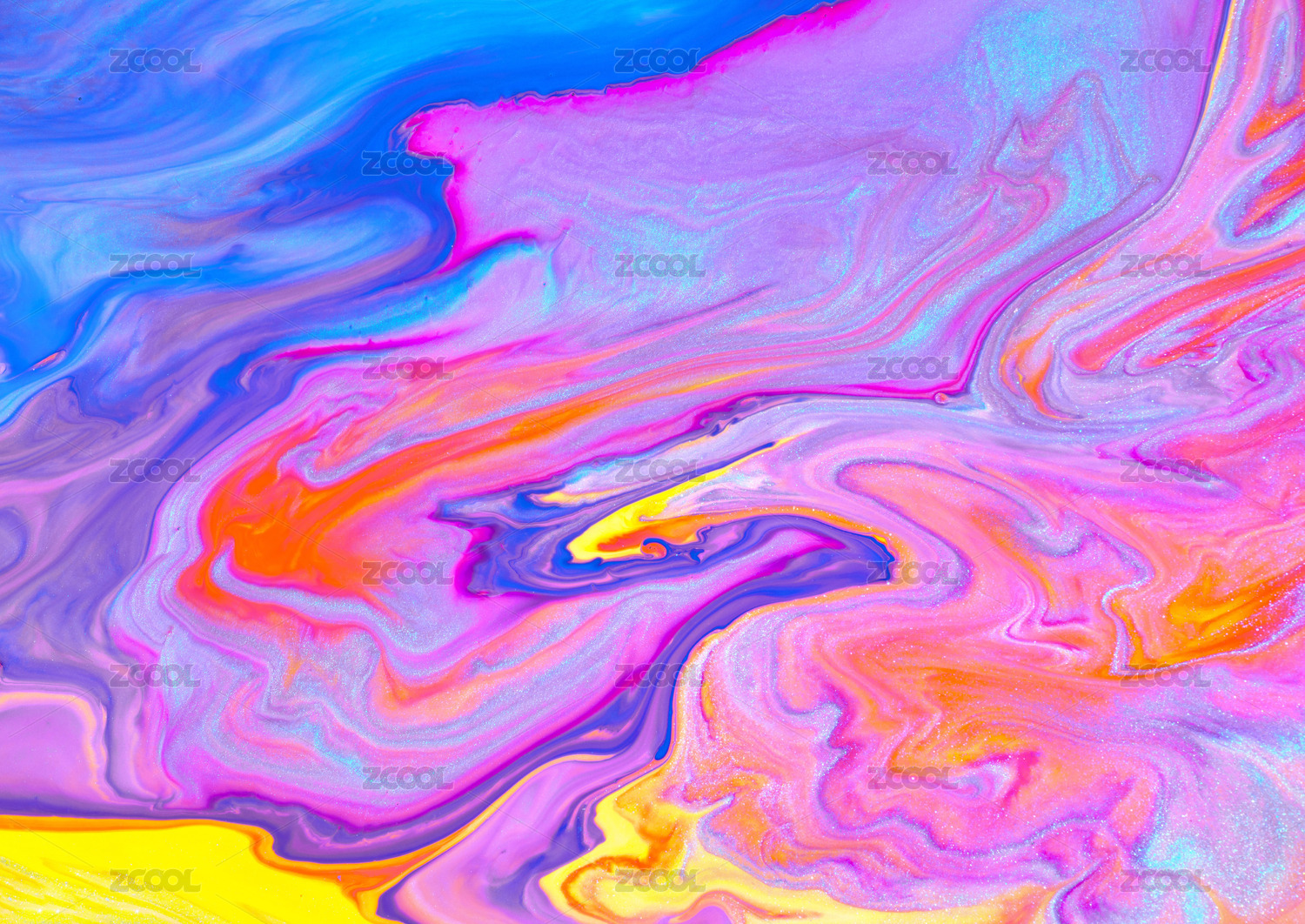 流动的丙烯颜料背景,抽象纹理。 不同的鲜艳颜色混合。