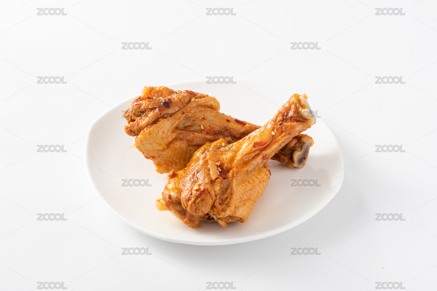 白色背景上的奥尔良味烤鸡翅和烤翅根