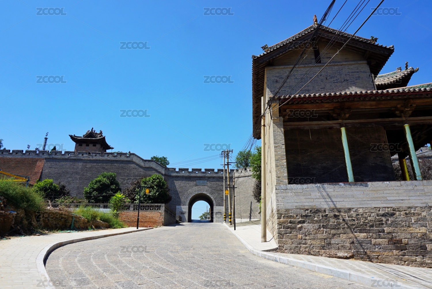 中国山西省代县城区明代城墙西城门园林建筑
