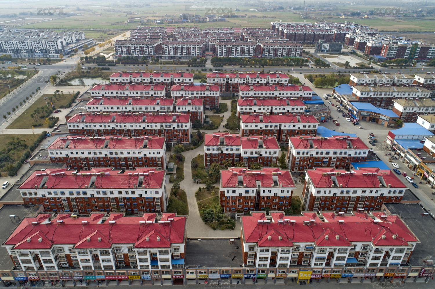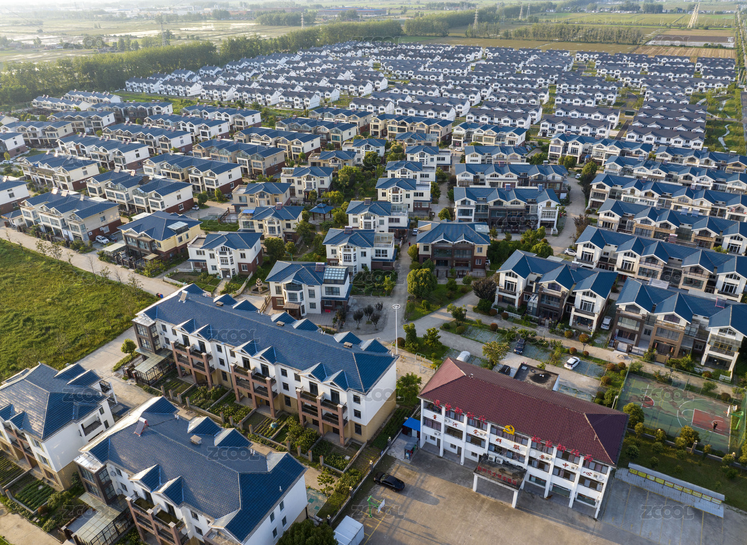 航拍安徽合肥蓝天下整齐排列乡村民居的村庄