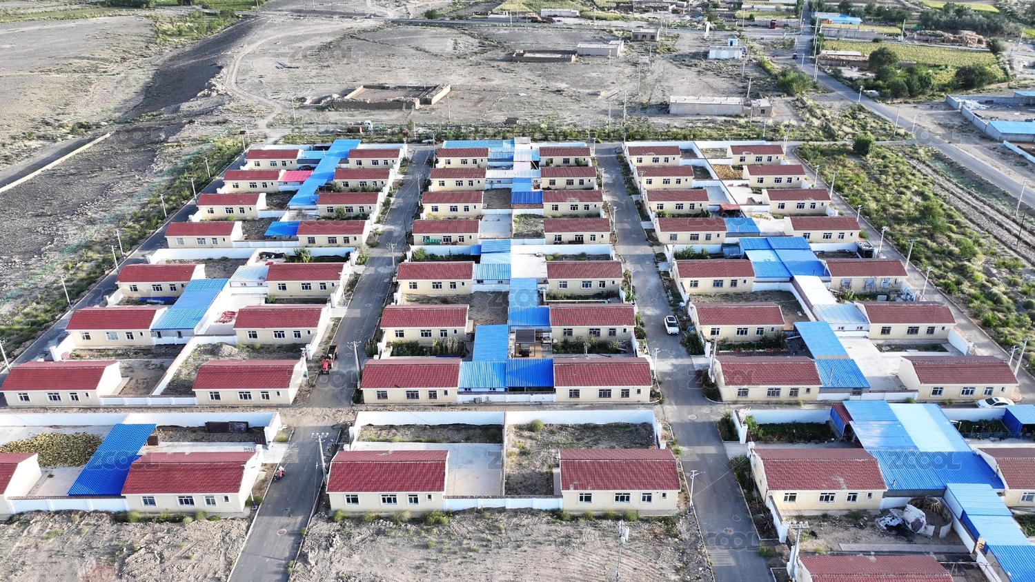 秋季,新疆,哈密,别墅式,新农村,房屋,规划,航拍,美景,天山