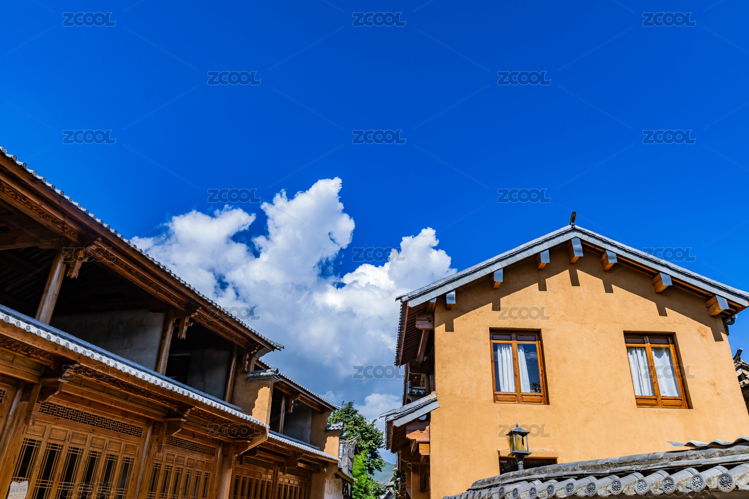 蓝天白云下的古建筑