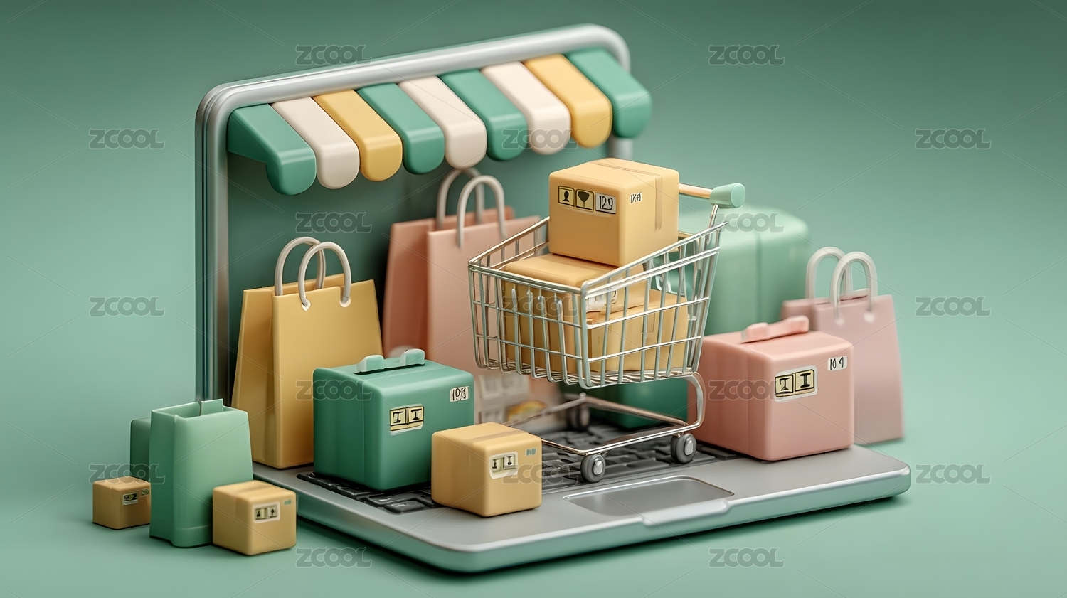 网络购物与物流运输3D渲染