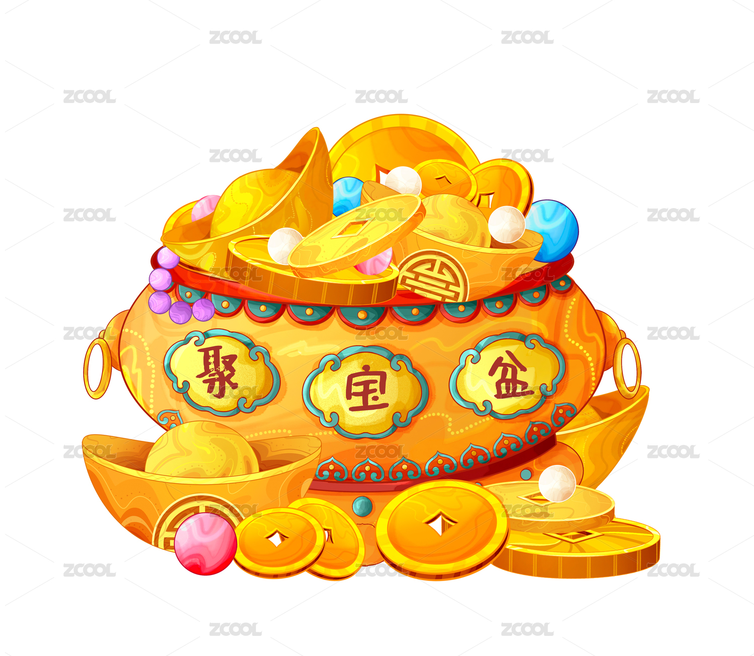 春节,新年,财富,元宝,硬币,发财,聚宝盆,传统,金融,投资