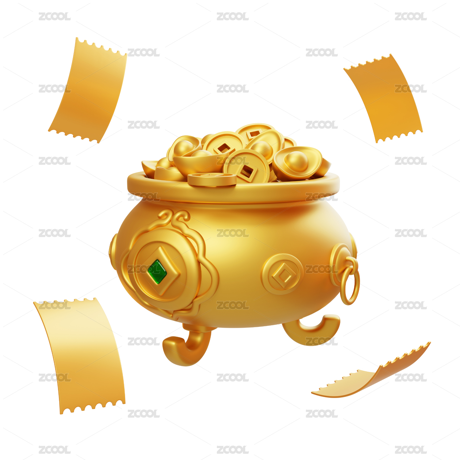 喜庆招财聚宝盆金币金元宝优惠券3D