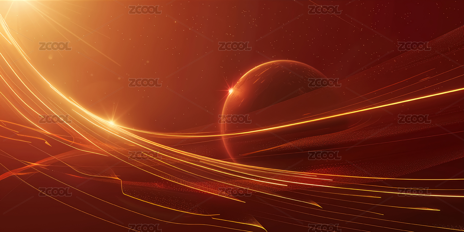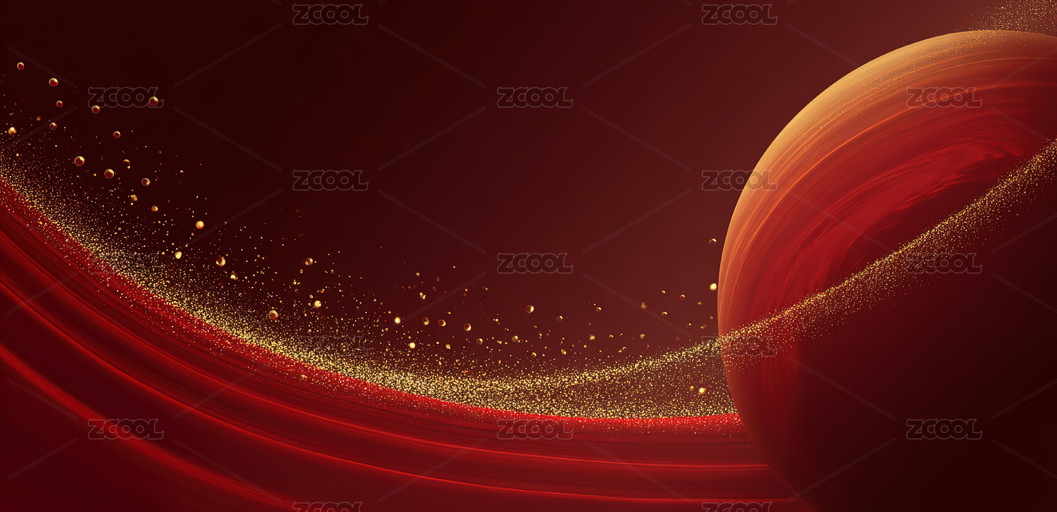 金色曲线红色抽象背景