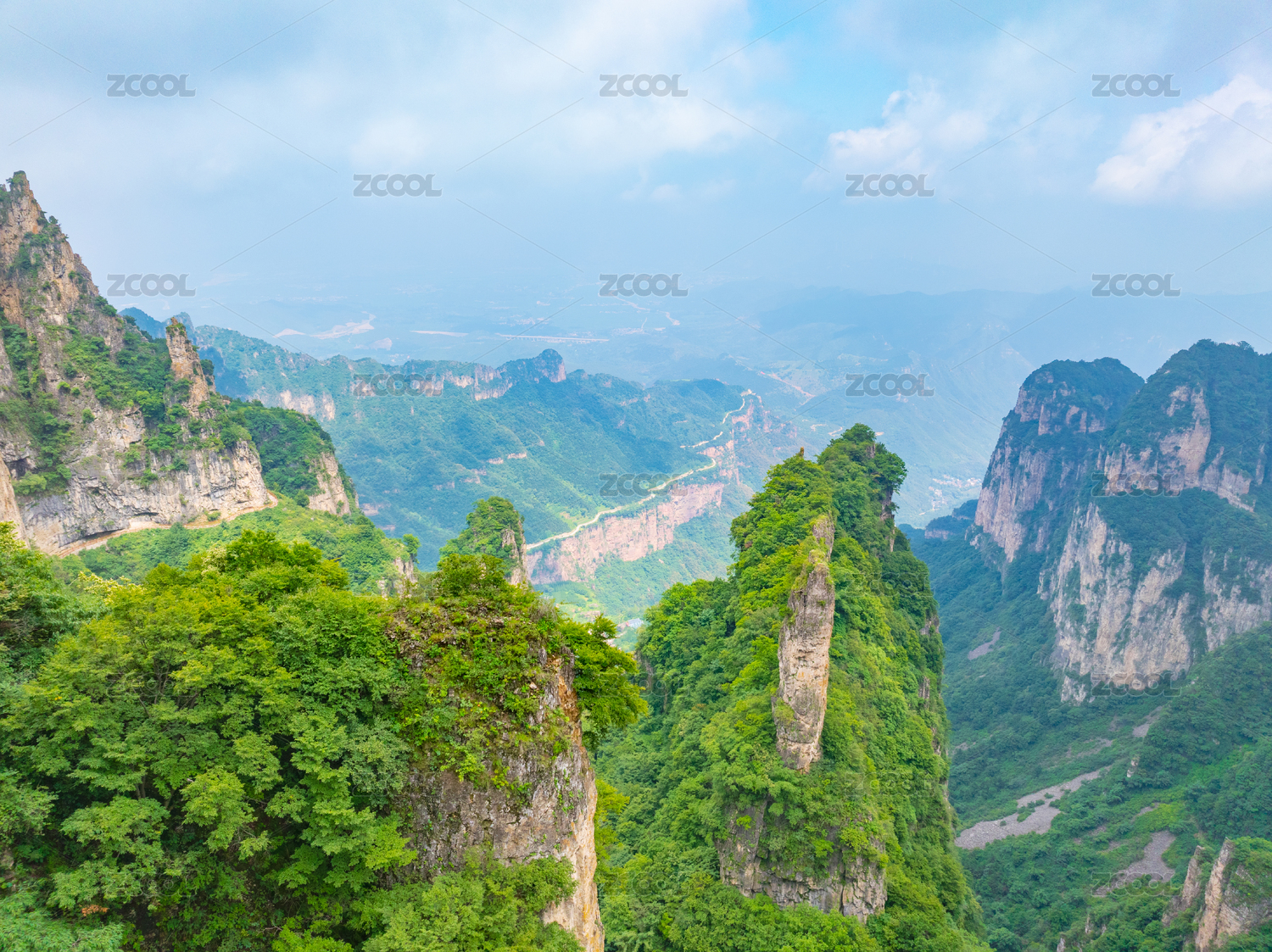 蓝天白云下的大山峡谷