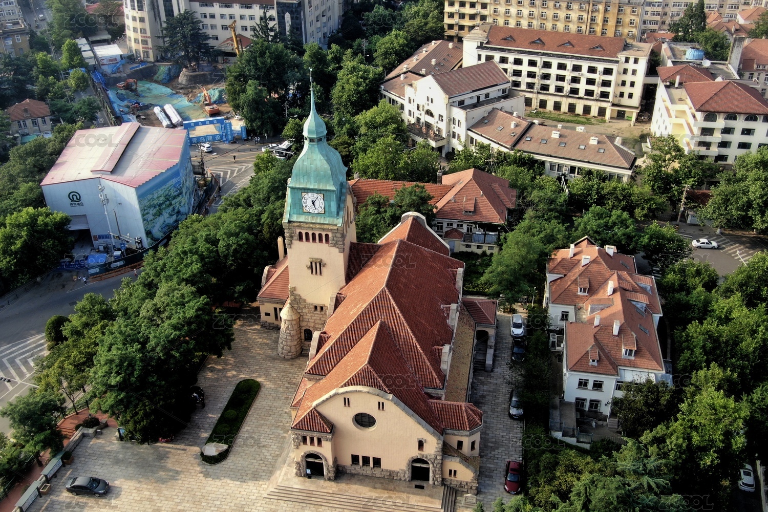 高视角俯瞰中国山东青岛著名景点总督府日景