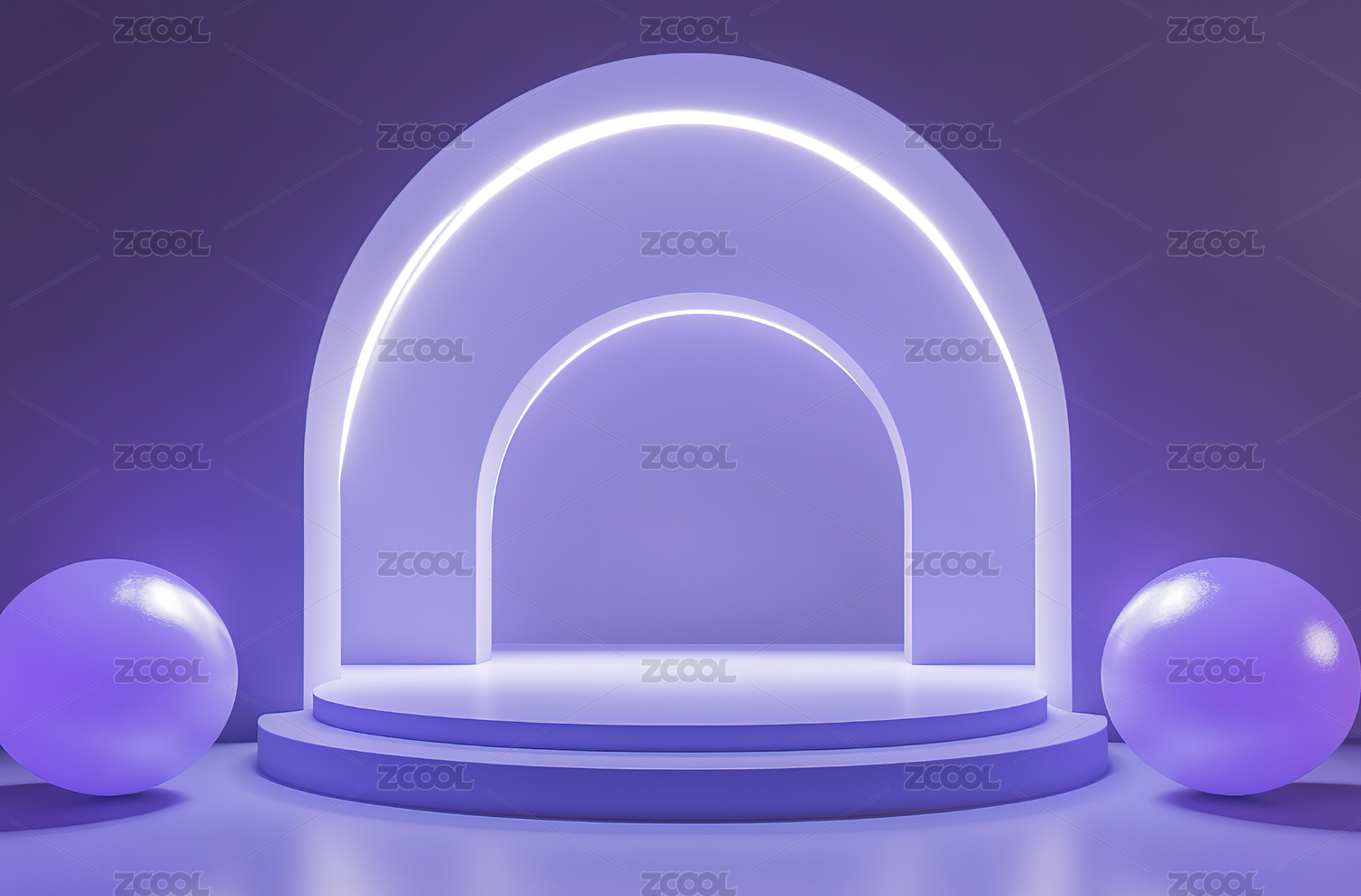 简约风格,白色,圆形底座,背景,深紫色,底座,紫色条纹,半圆形拱门,拱门,明亮