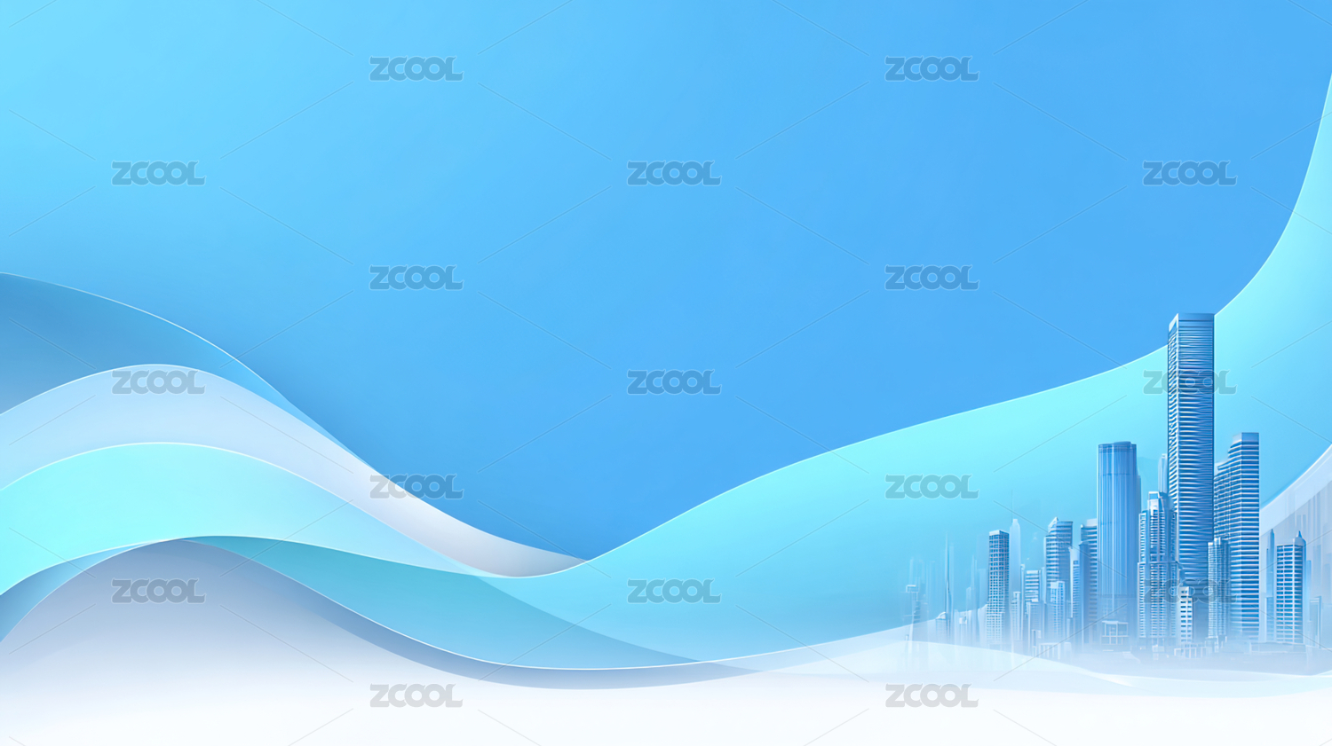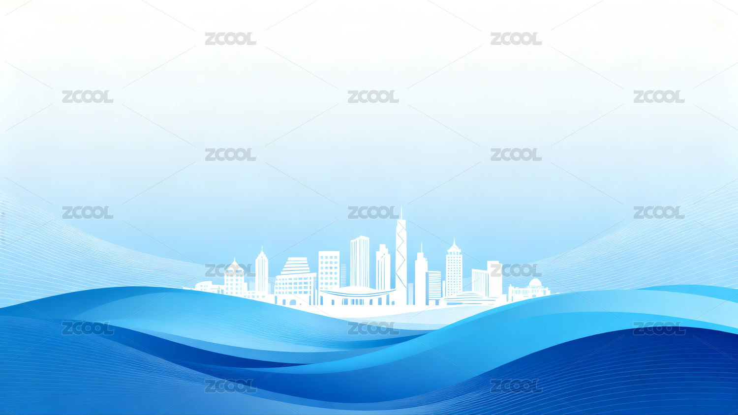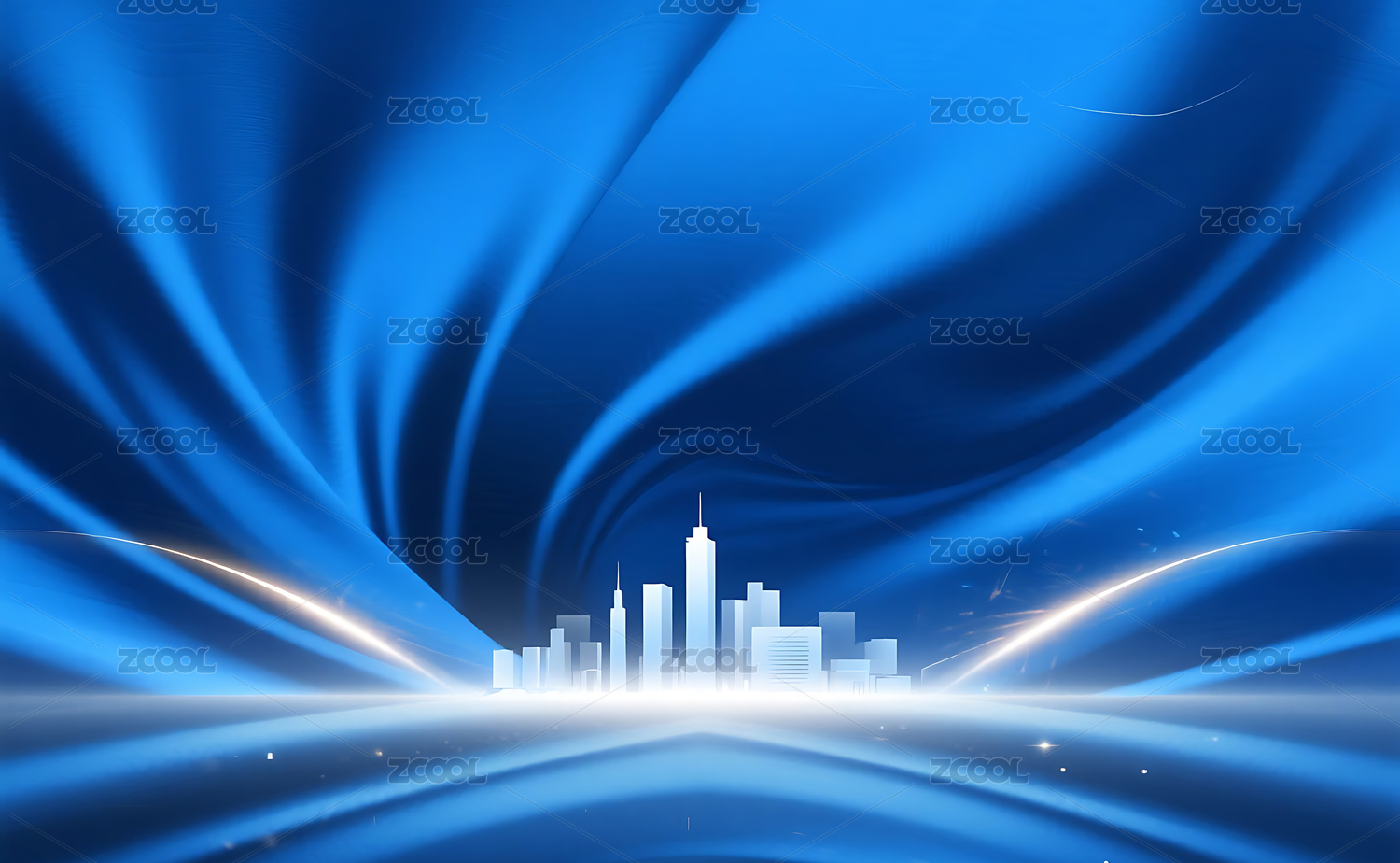 蓝金色绸缎布料城市建筑天际线商务庆典背景