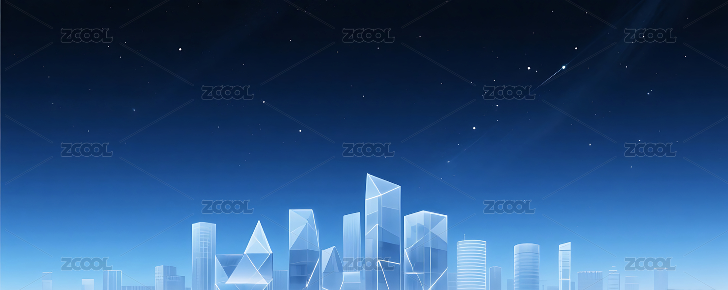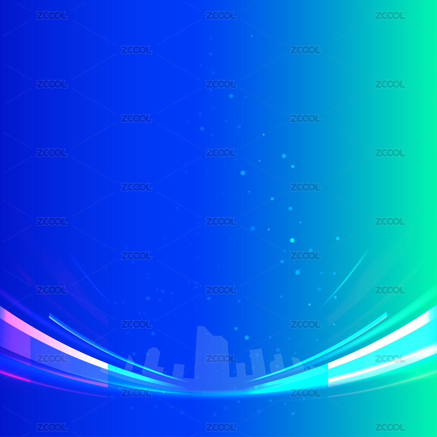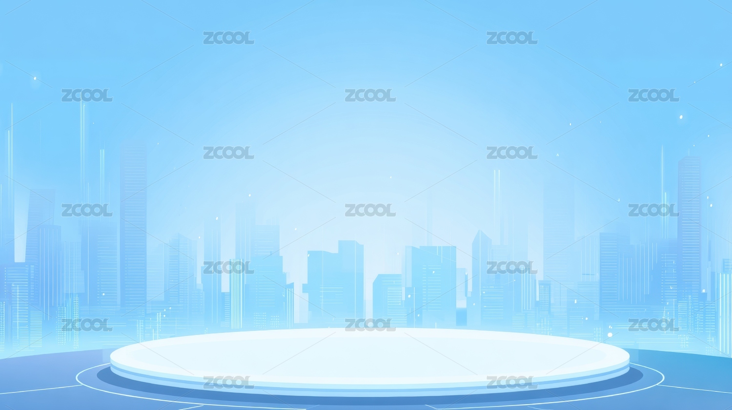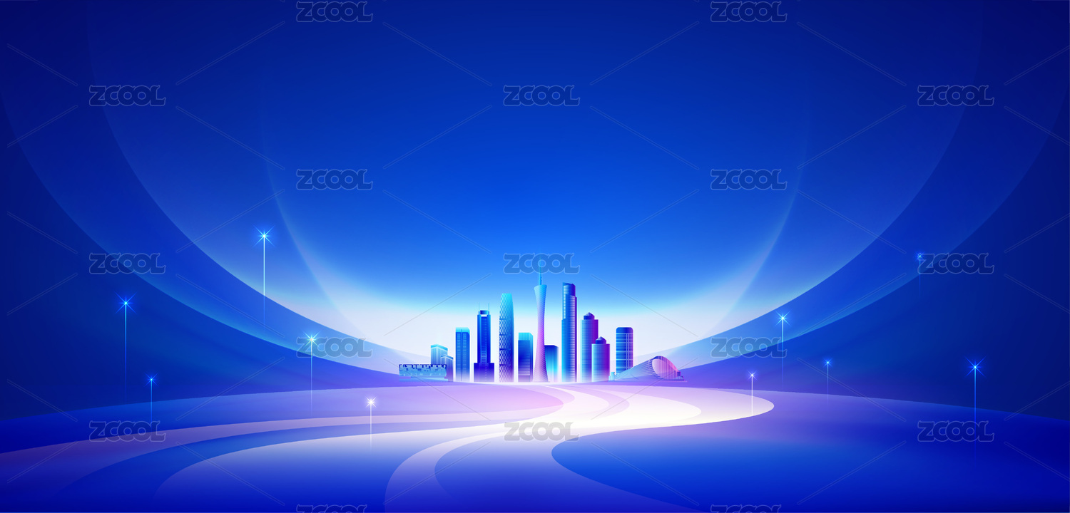 蓝金色绸缎布料城市建筑天际线商务庆典背景