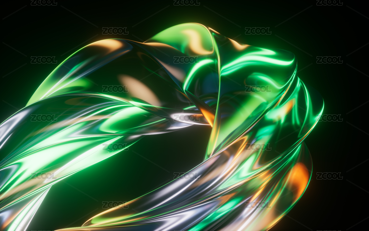 抽象霓虹曲面背景三维渲染