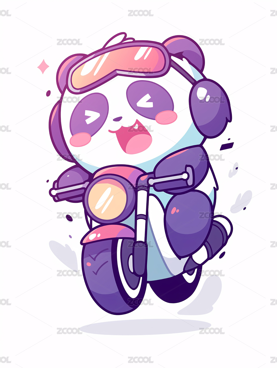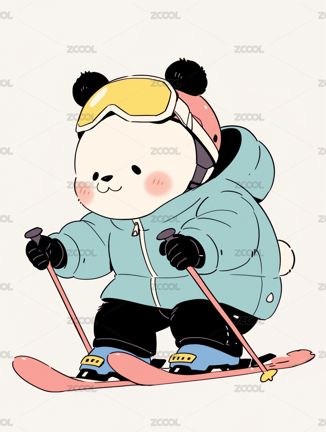 熊猫动物拟人图案运动骑自行车举重滑雪