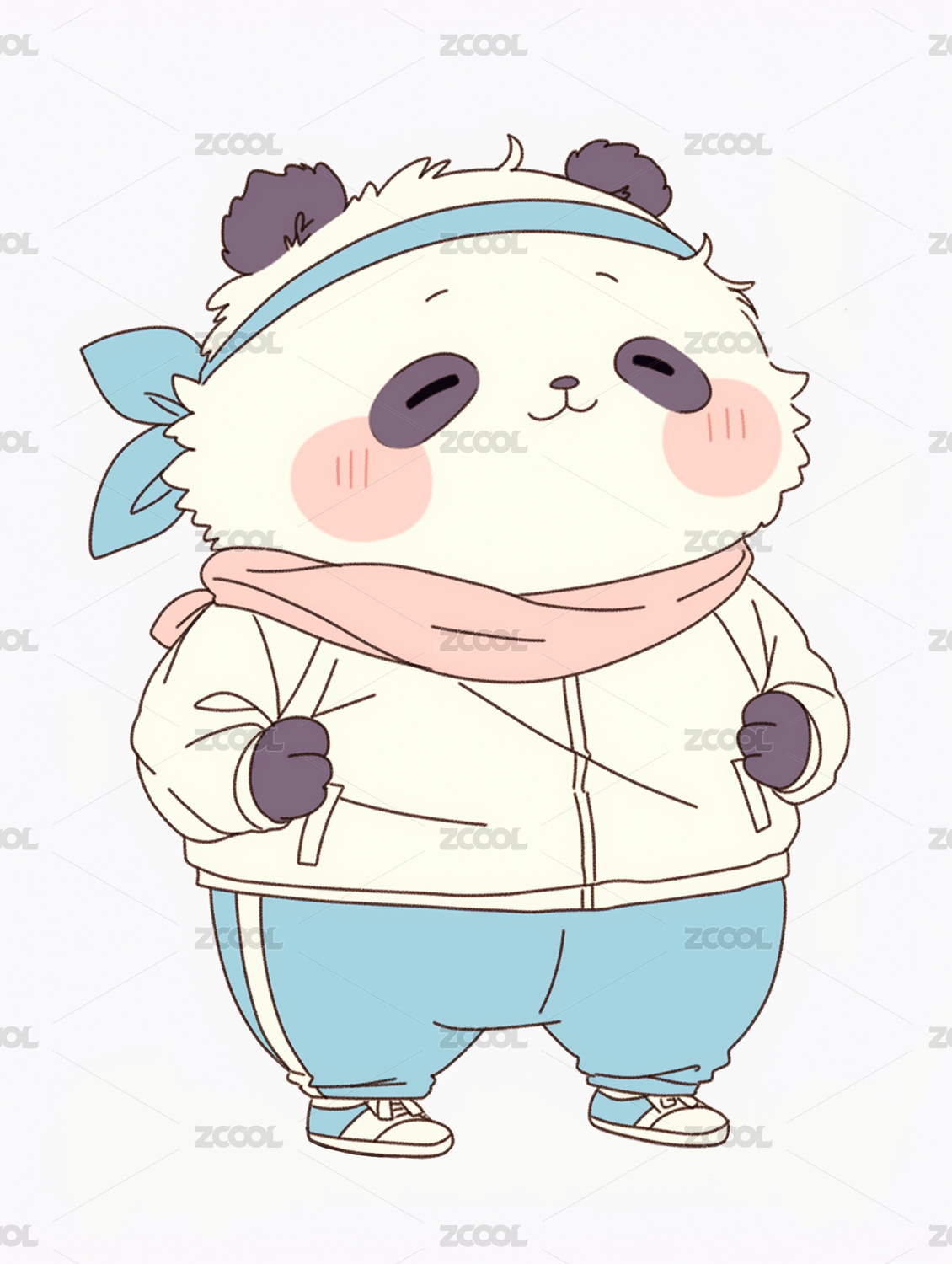 熊猫动物拟人图案运动骑自行车举重滑雪