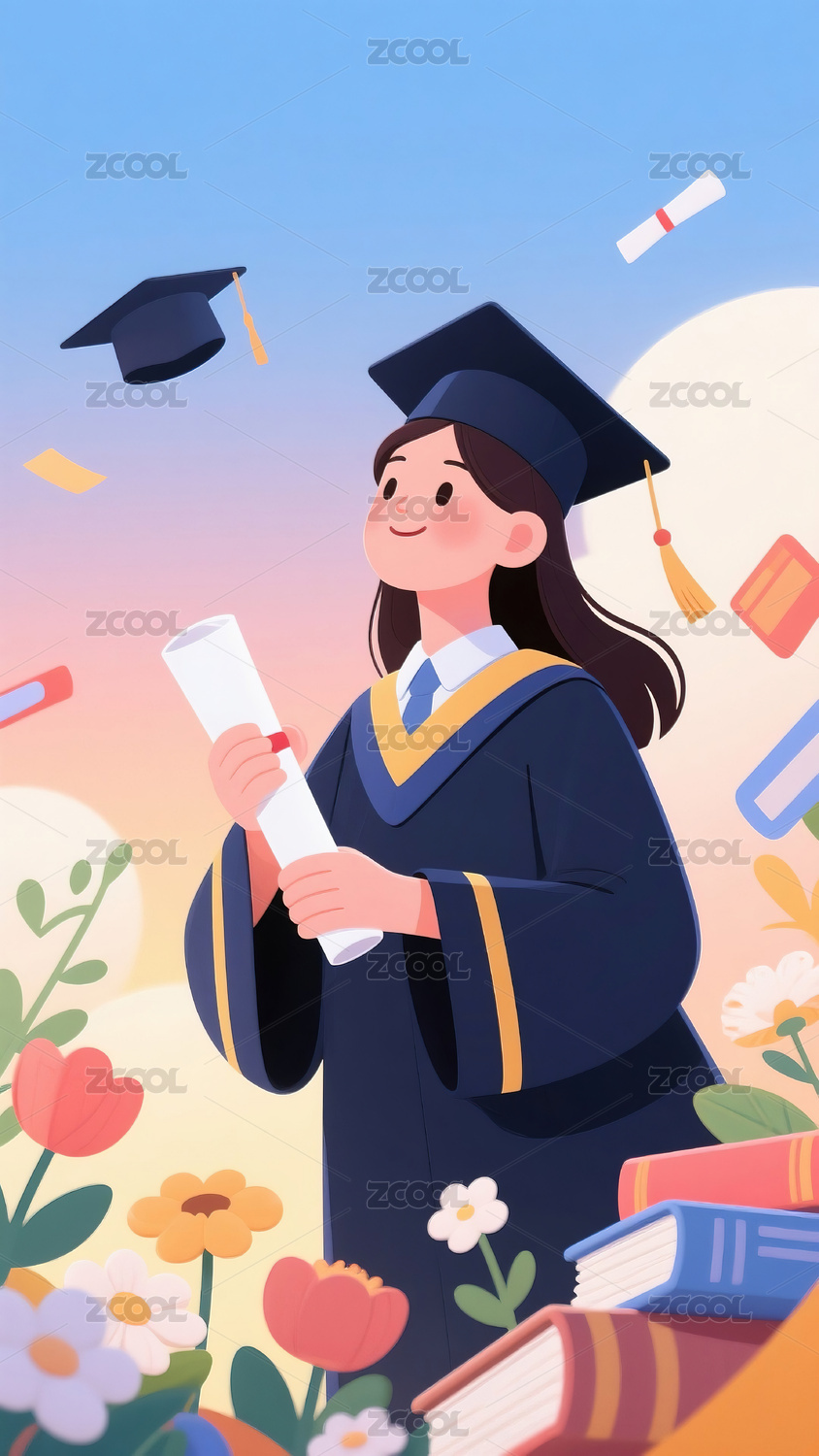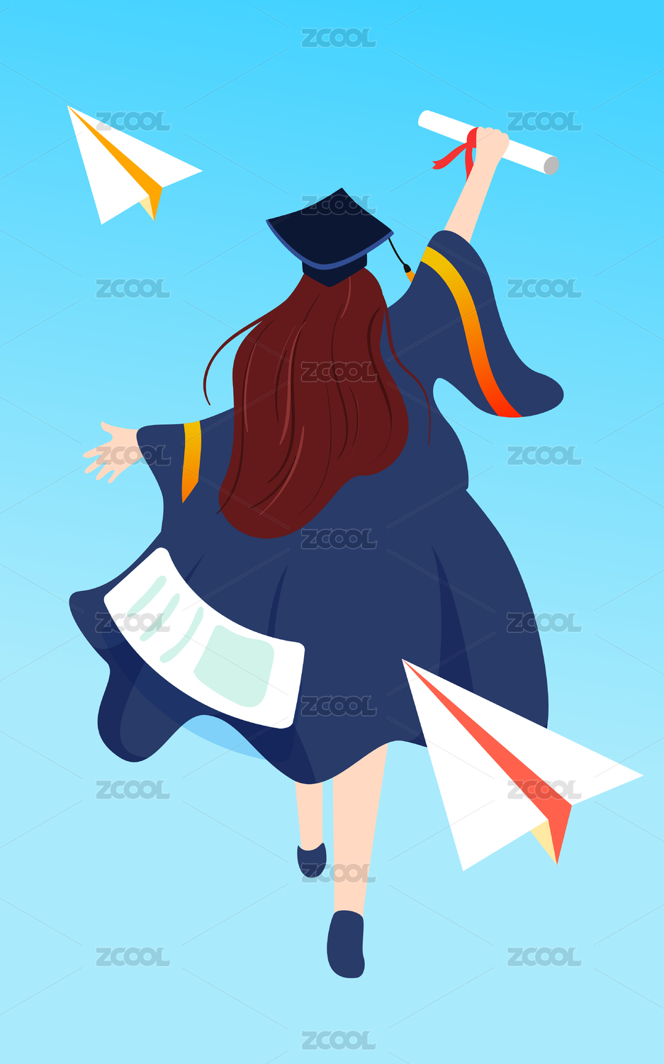 学生穿着学士服毕业季高考冲刺学习教育插画