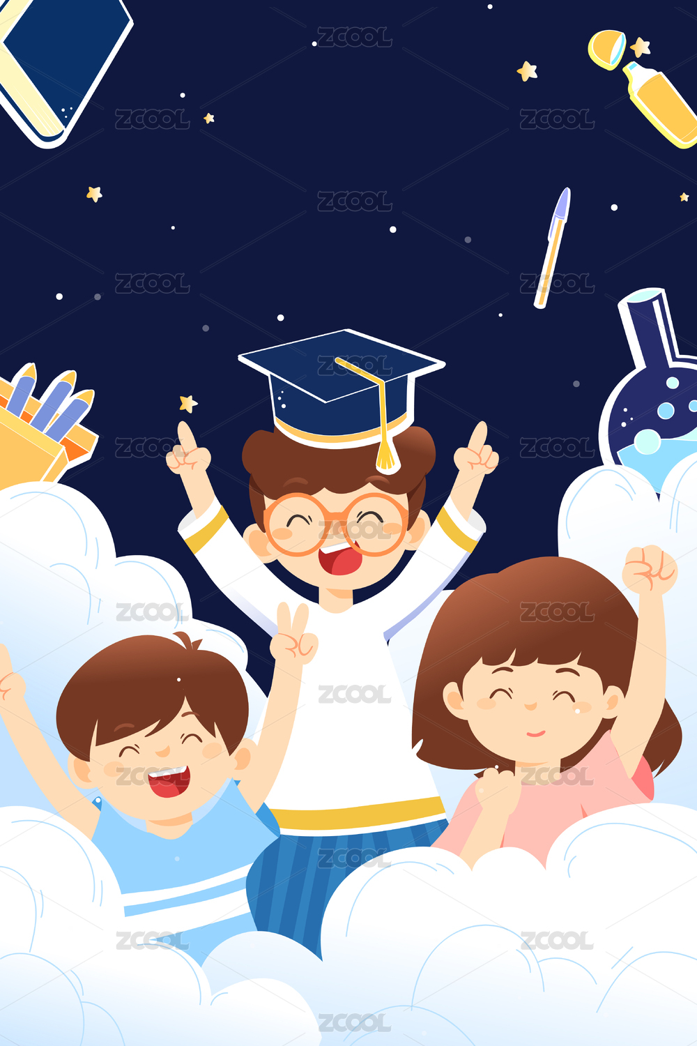 学生高考毕业开心跳跃考研冲刺学习教育插画