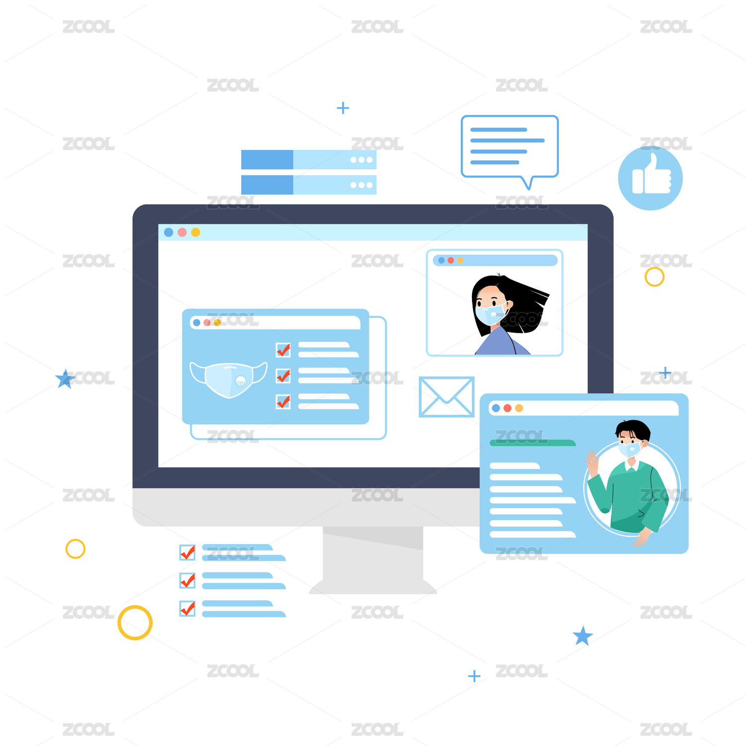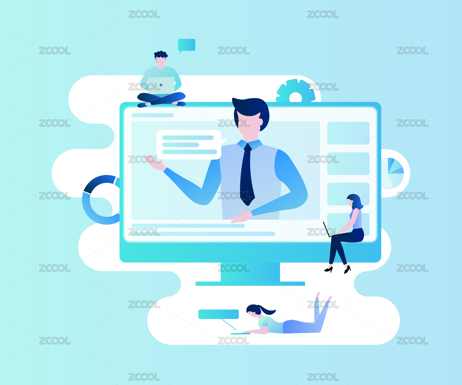 在线办公卡通插画