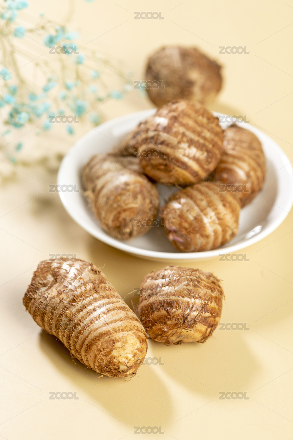 保健营养品芋头特写黄色背景莫兰迪色系