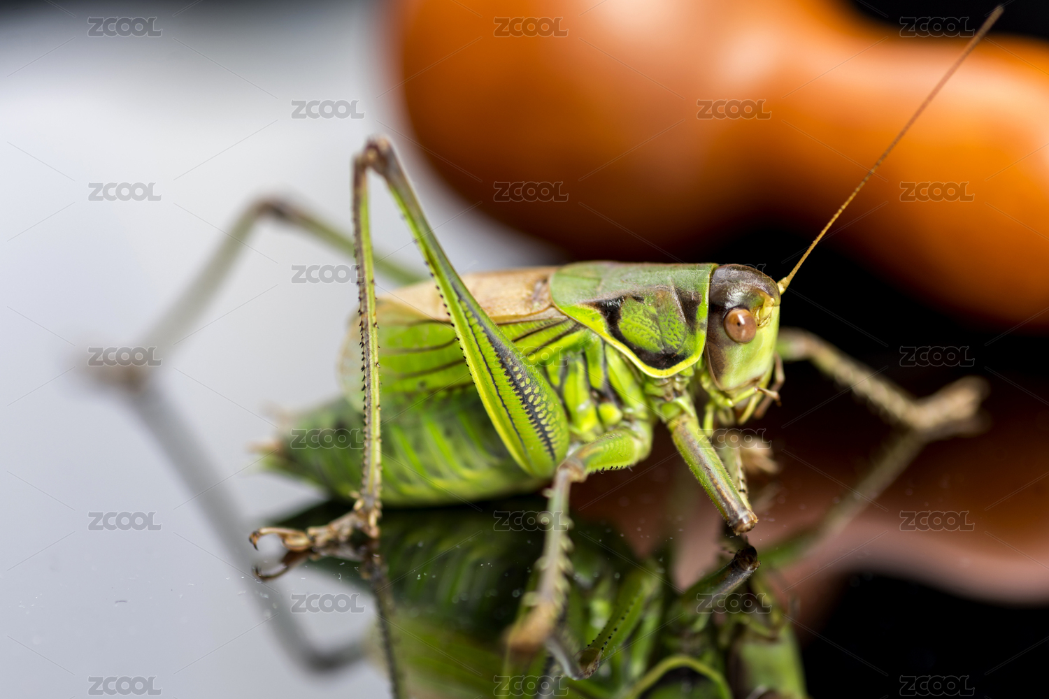鸣虫蝈蝈站立在桌面上特写