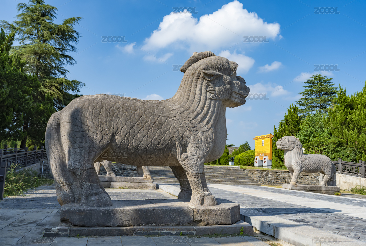 南京钟山明孝陵景区石像路夏季獬豸狮子麒麟