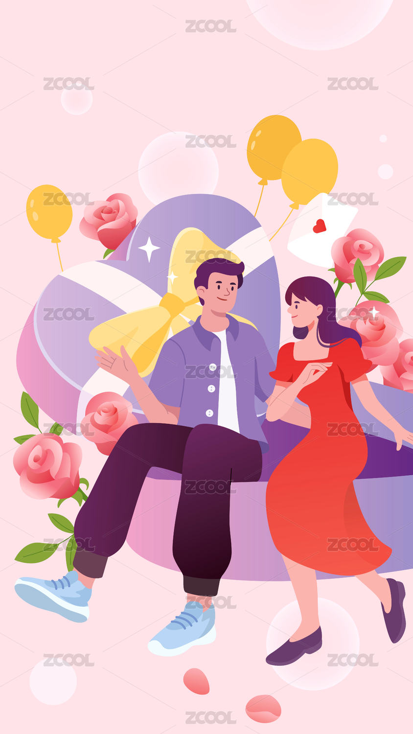 插画海报浪漫情人节七夕节礼物气球生日惊喜