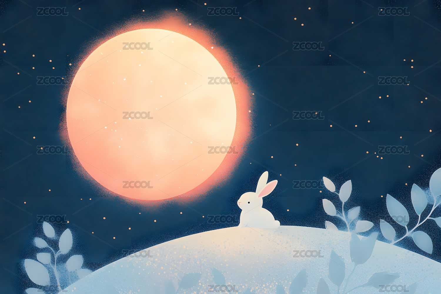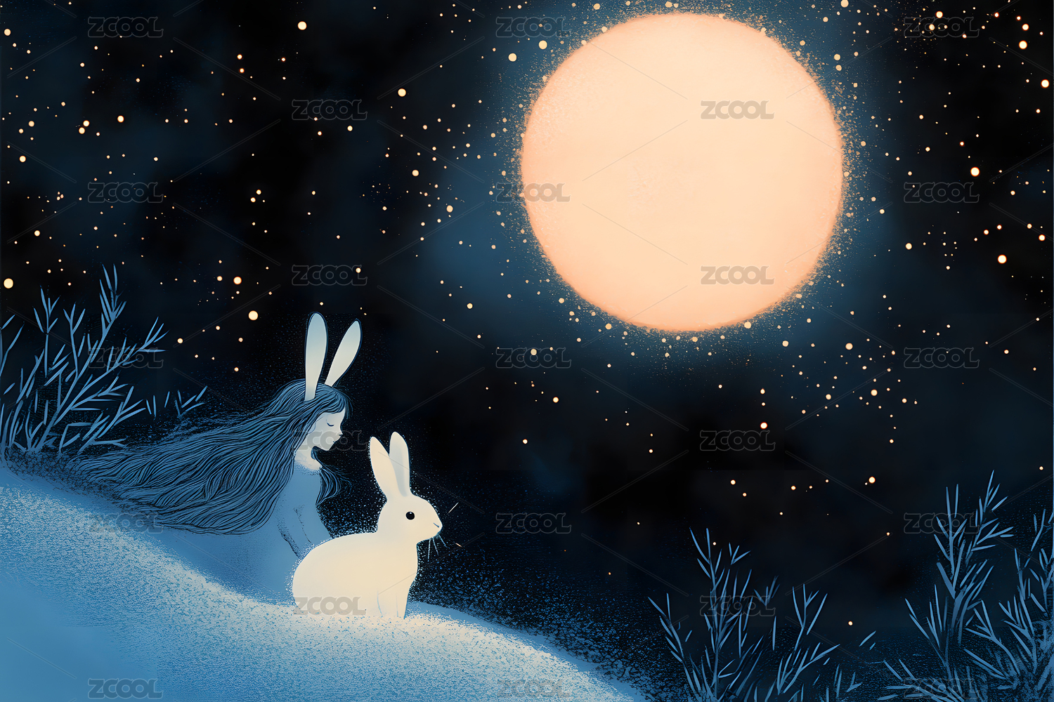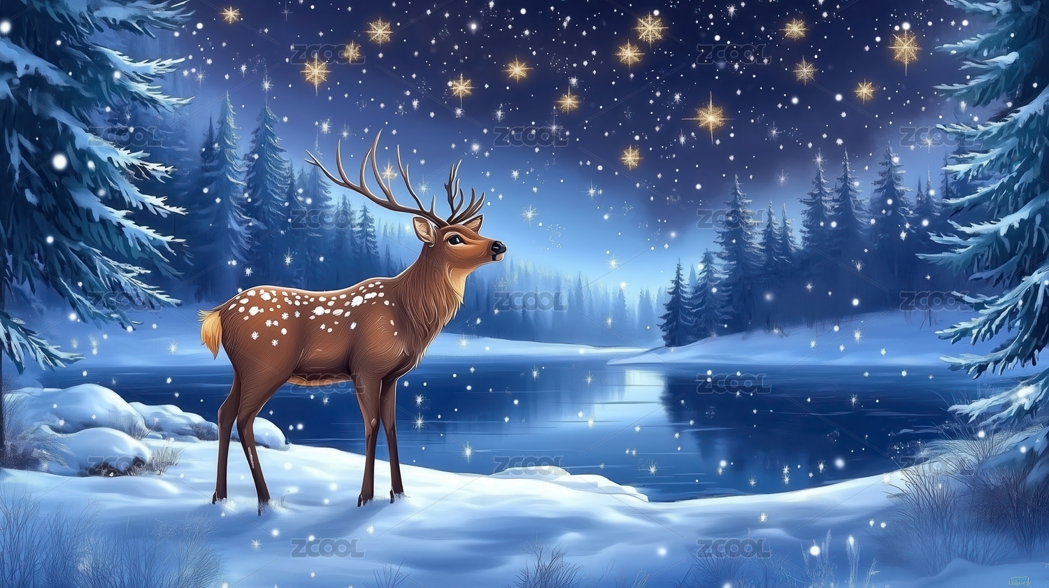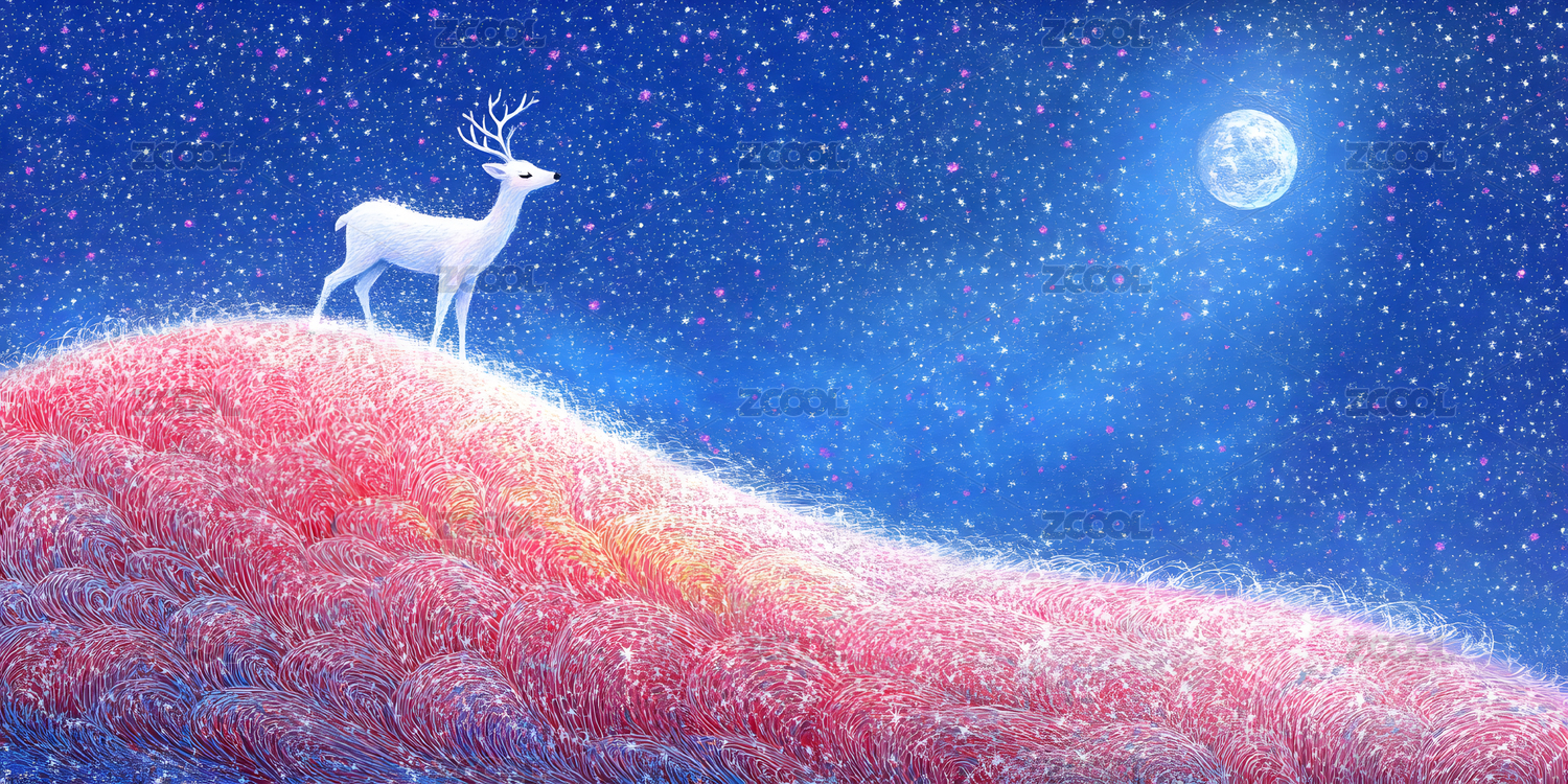 梅花鹿,夜空,明月,皓月,繁星,商业插画