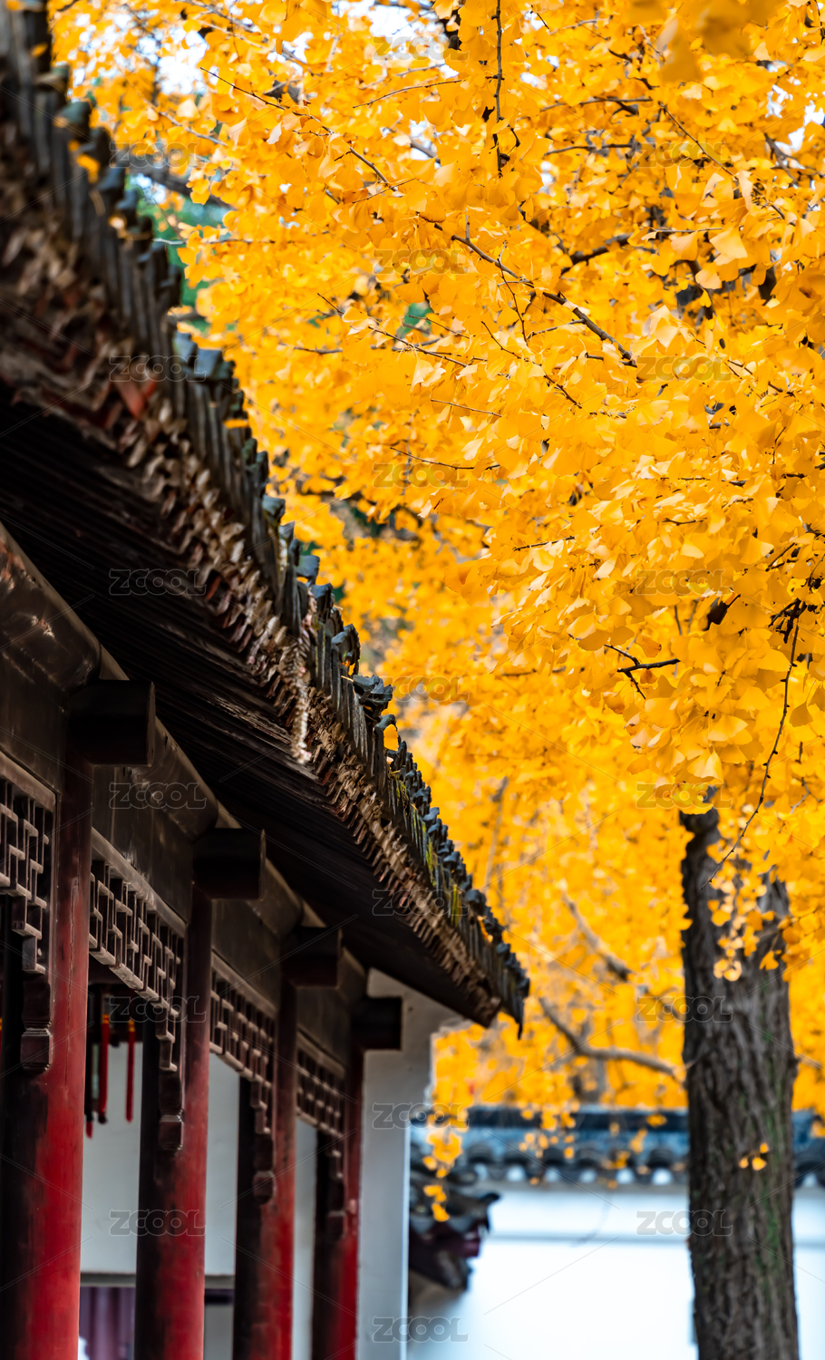 陕西西安古观音禅寺银杏叶