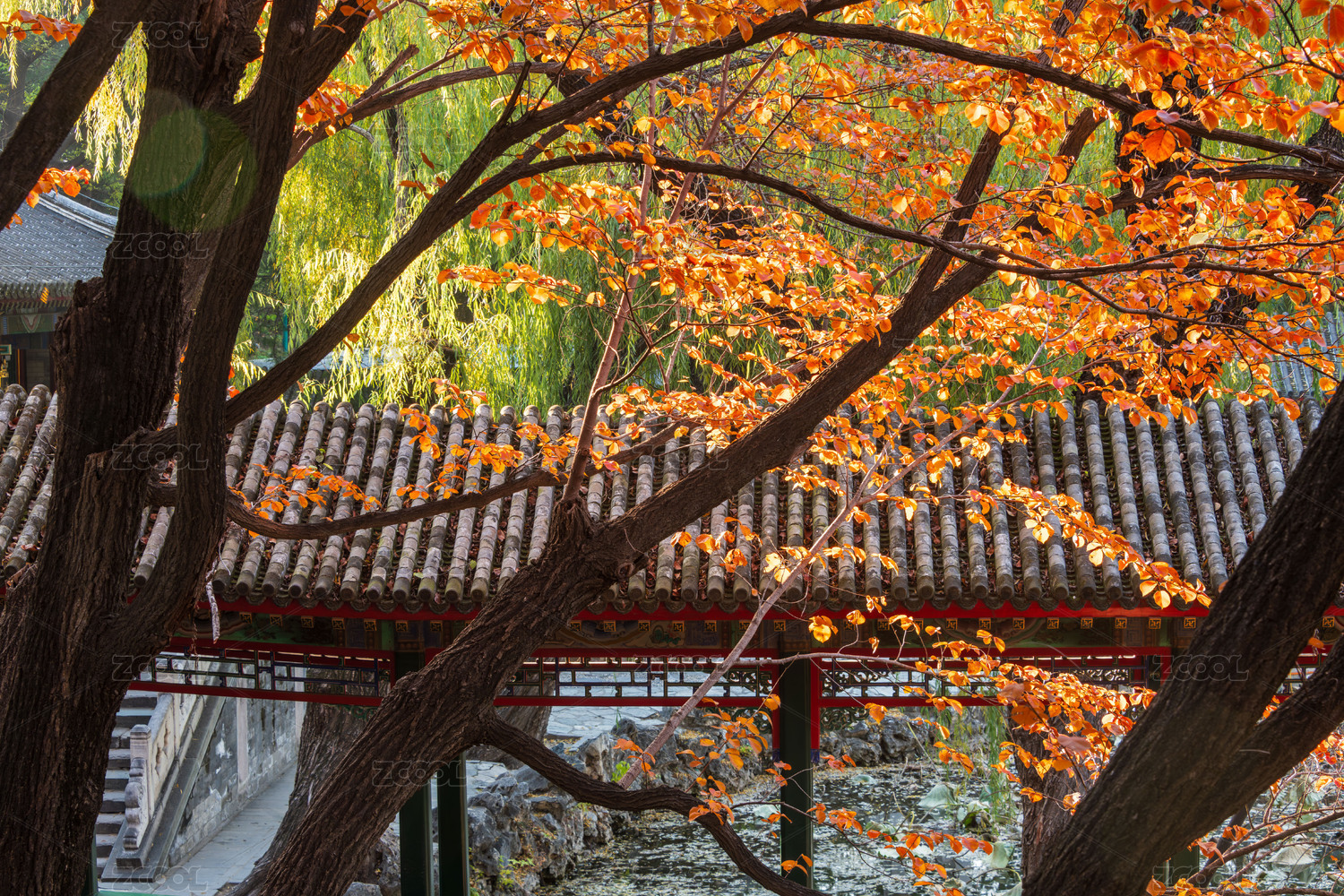 北京颐和园谐趣园秋日风景