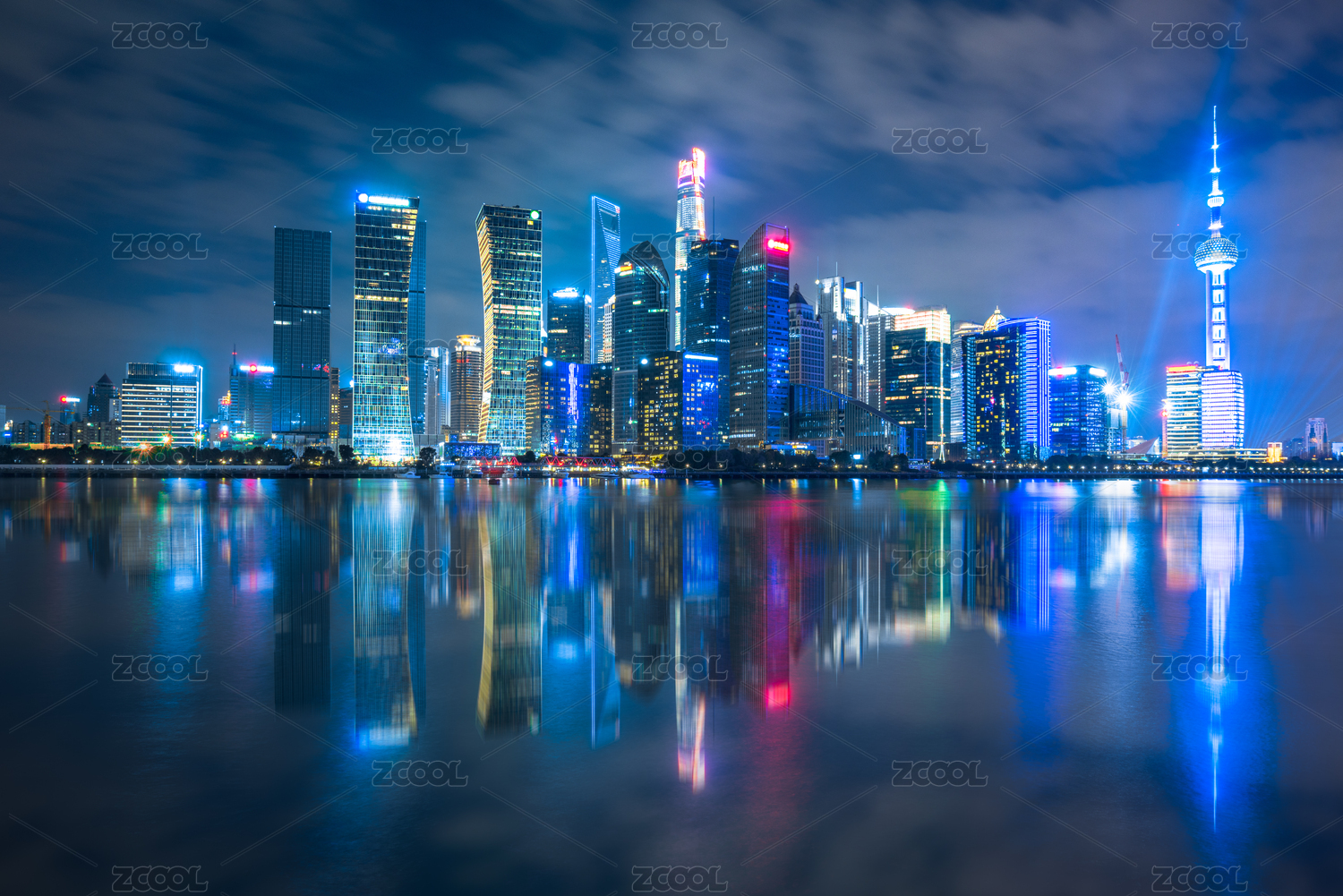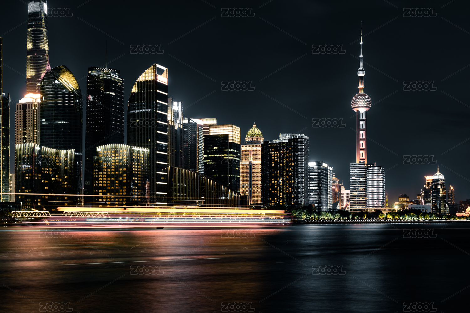 上海的天际线,与黄浦江,晚上在中国上海的标志性建筑。