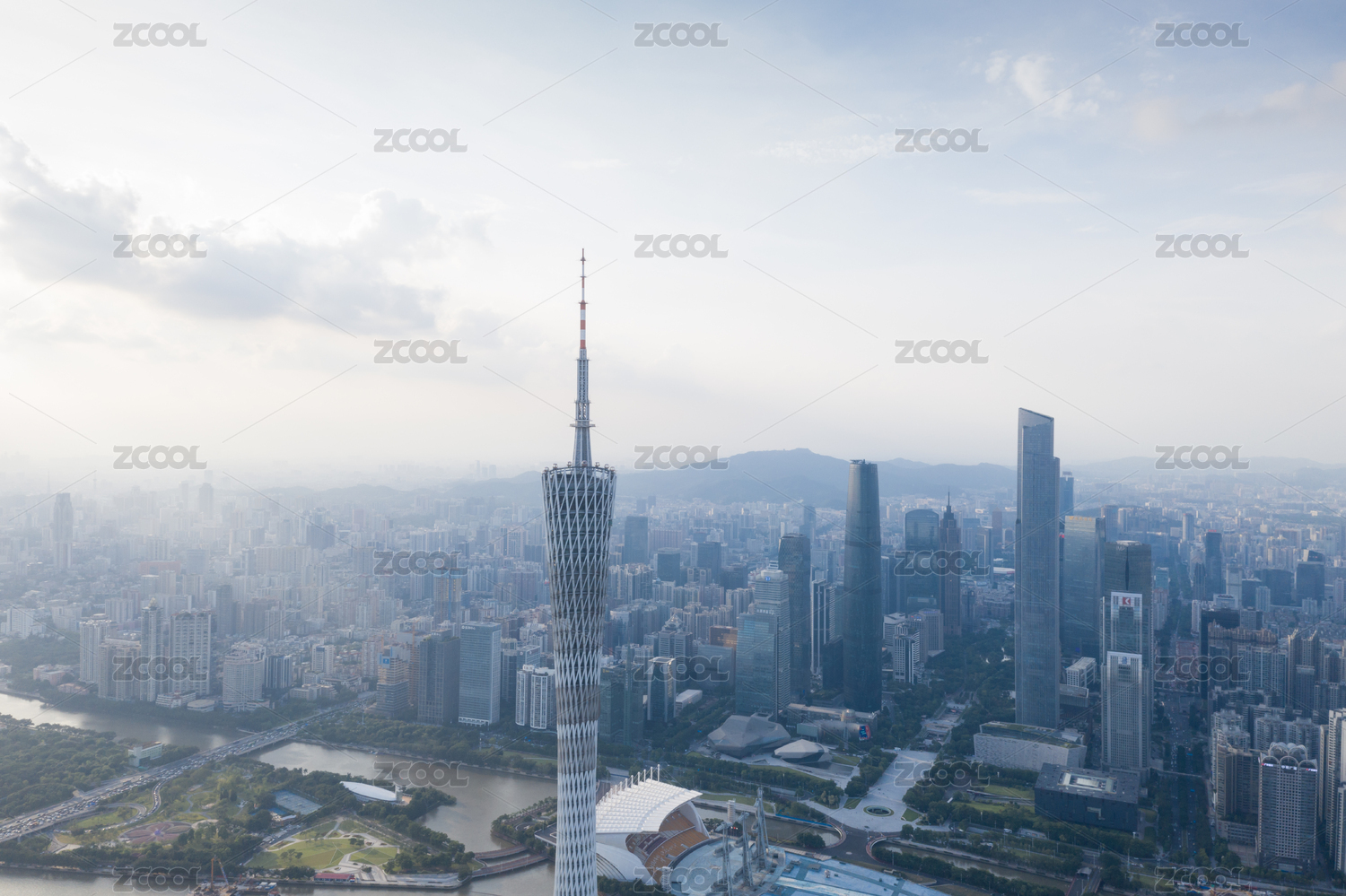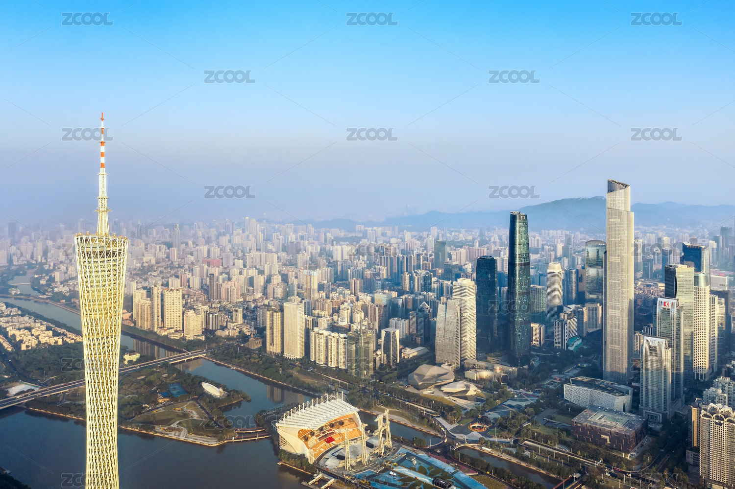 航拍广州珠江新城金融商务区建筑群和城市天际线