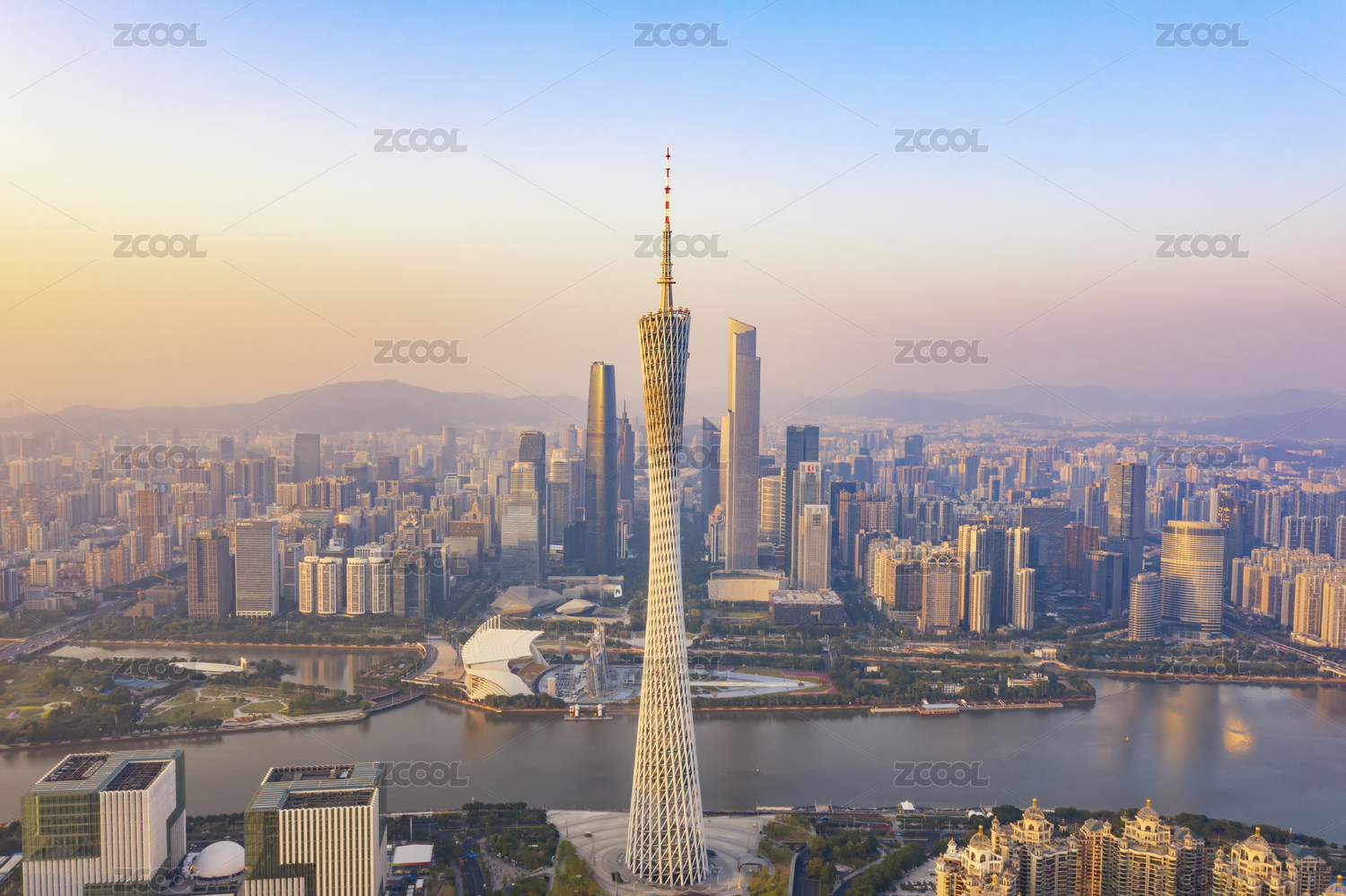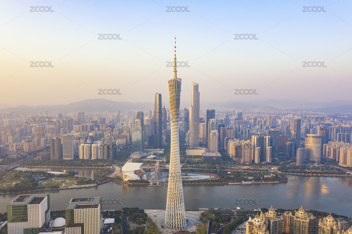 广州城市风光,广州塔和珠江新城黄昏天际线
