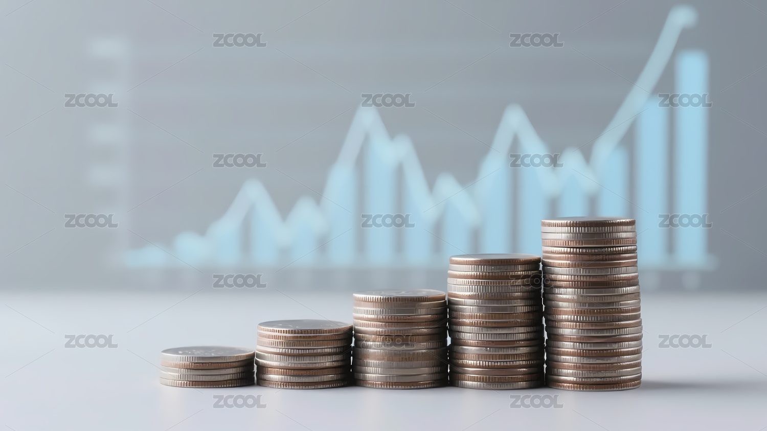 银色硬币堆配浅灰图表