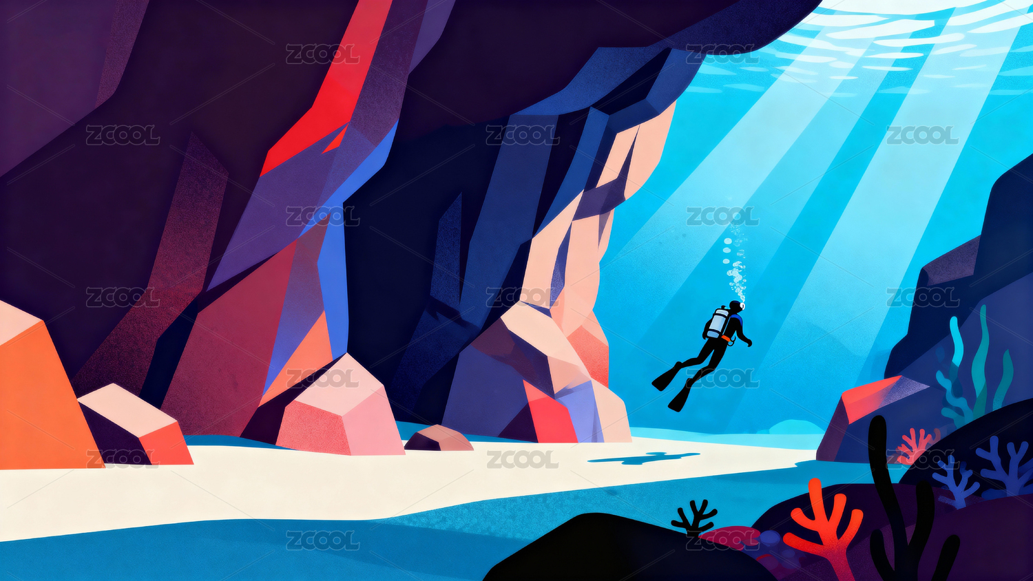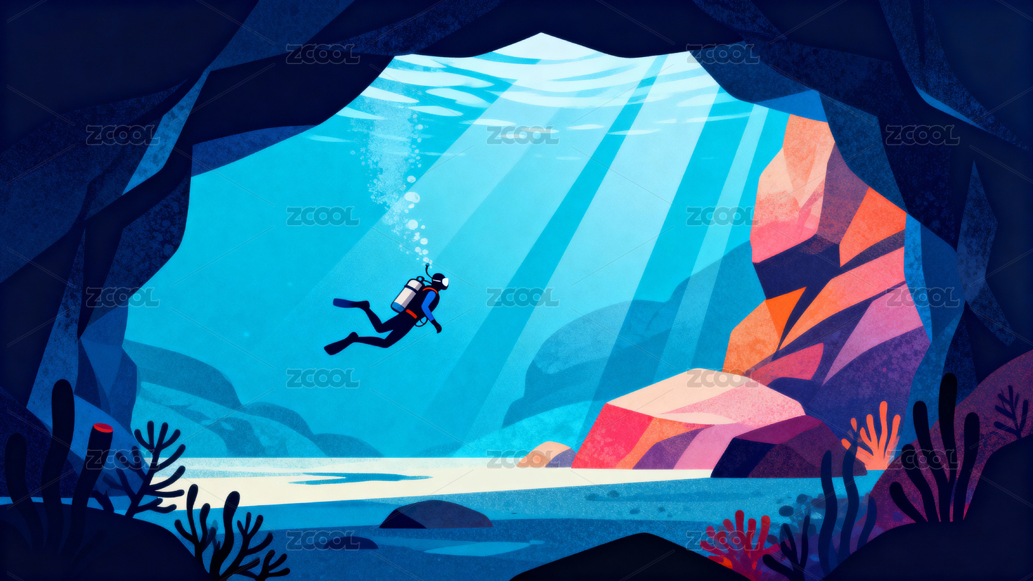 夏季,夏天,海洋,鱼,插画,海底,海水,海浪,波涛,炎热