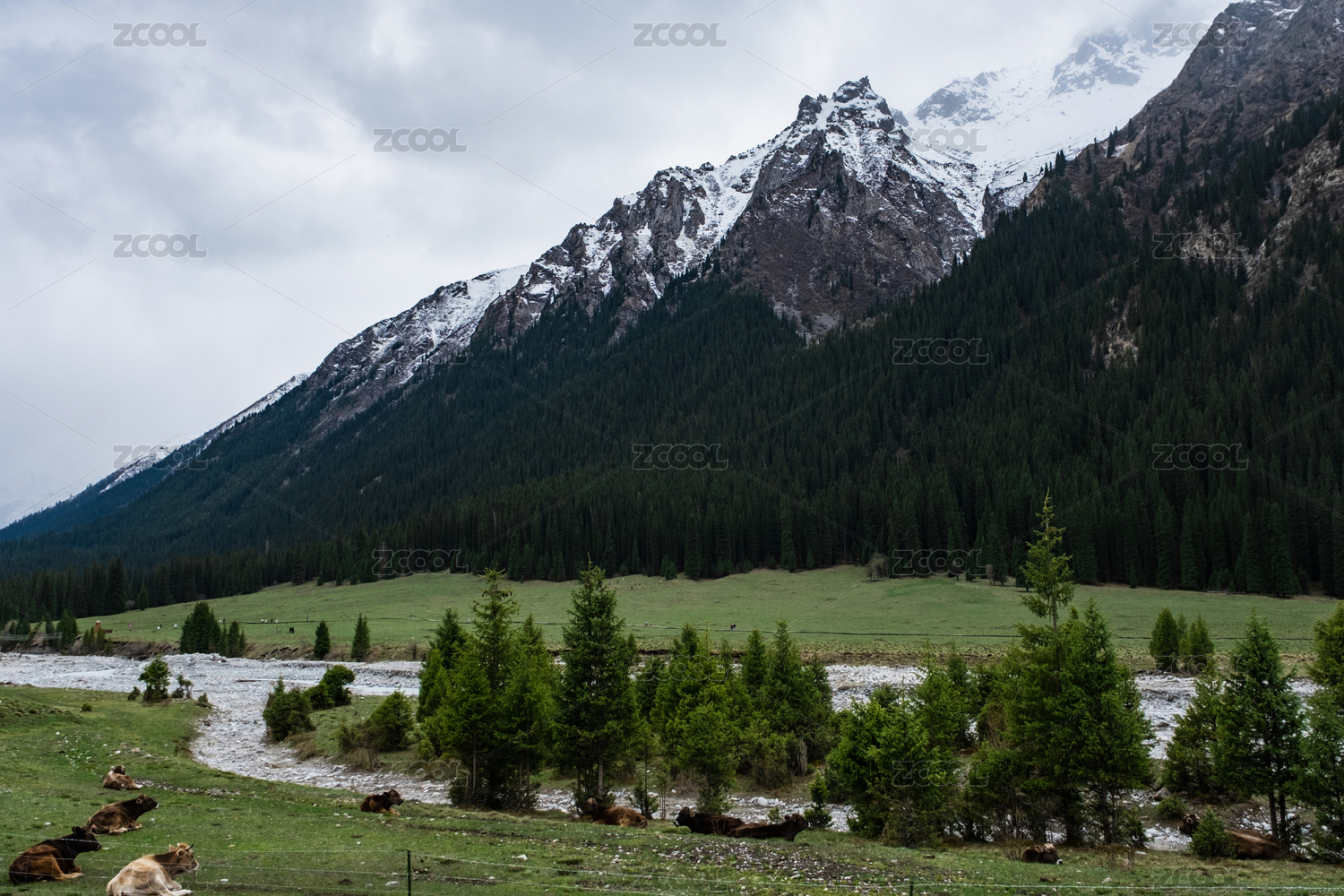 中国新疆伊犁夏塔雪山森林草原河流绝美风光