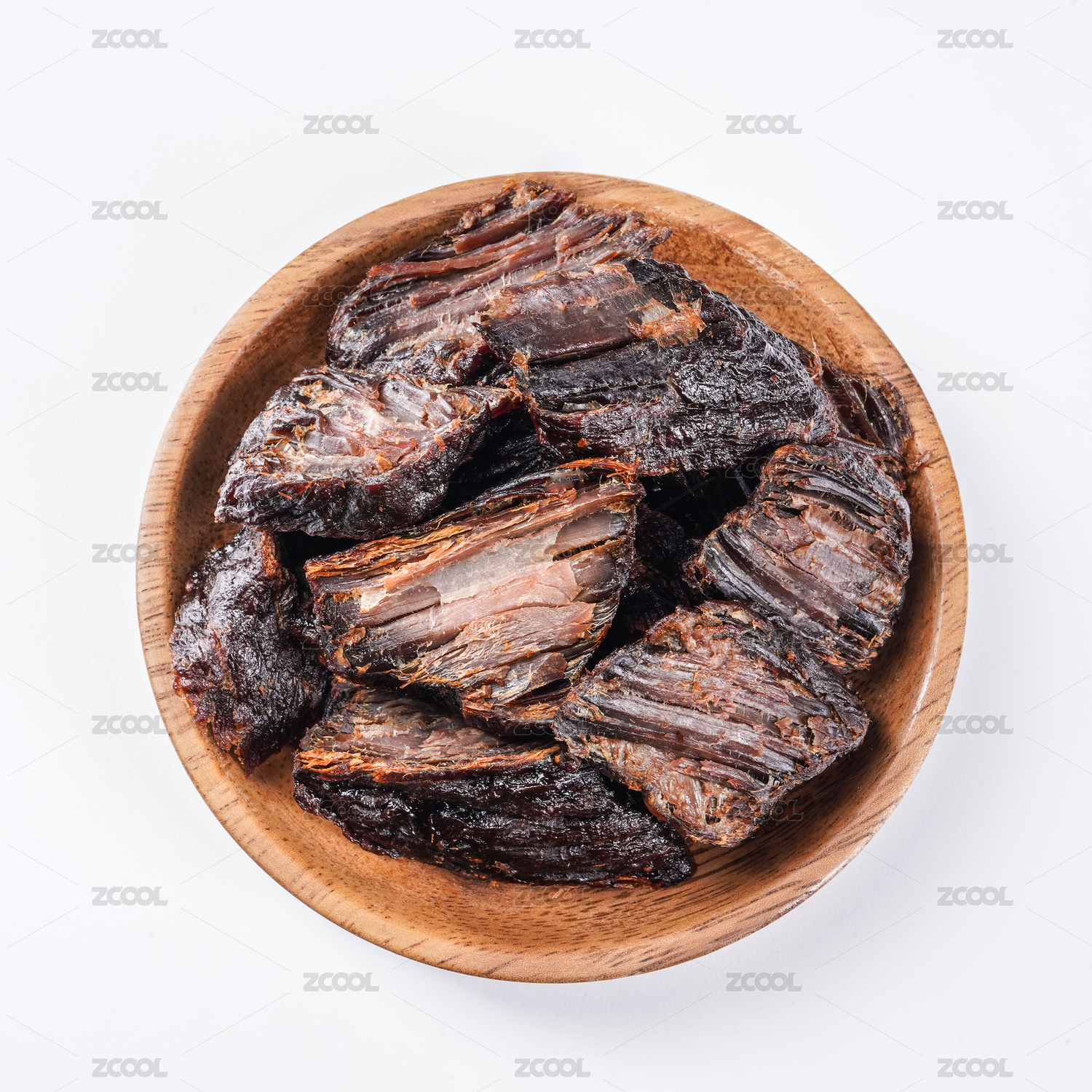 白色瓷盘装的墨鱼汁香煎猪五花肉