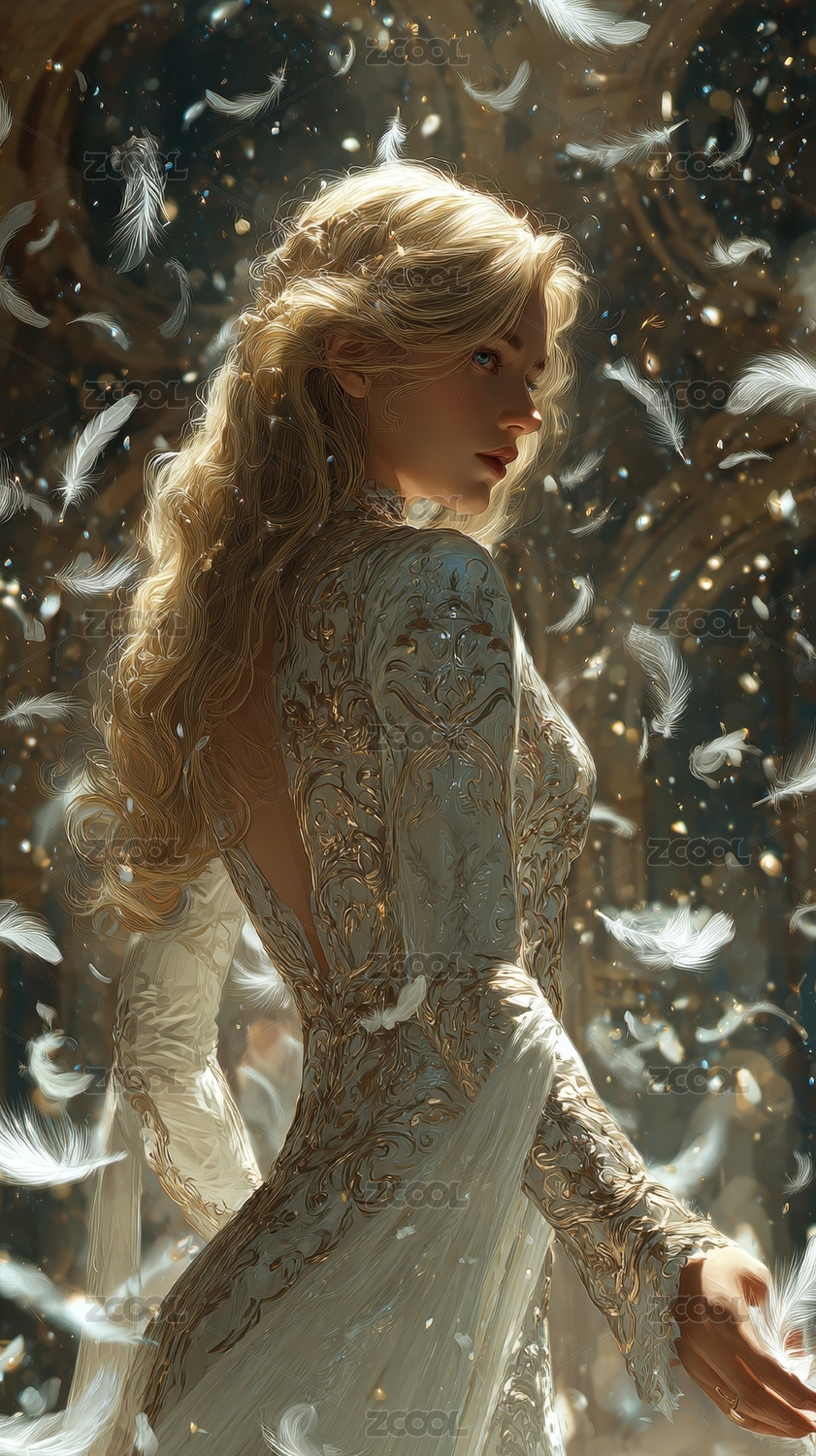 女神,白发,CG,动漫,公主,公主裙,可爱,美丽,美女,梦幻