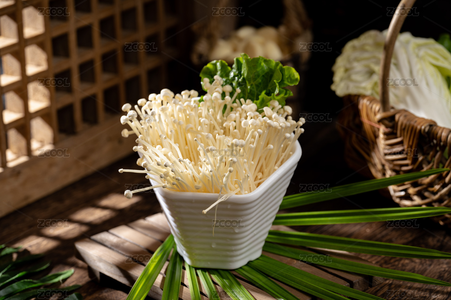放在盘子中的金针菇生菜