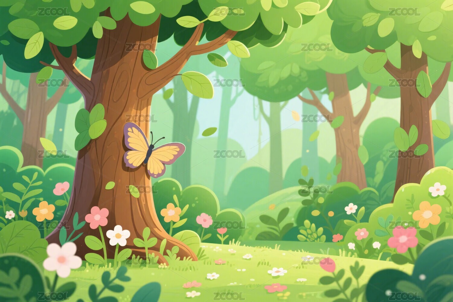 绿色自然的树林中小溪流水阳光洒进草地温暖惬意