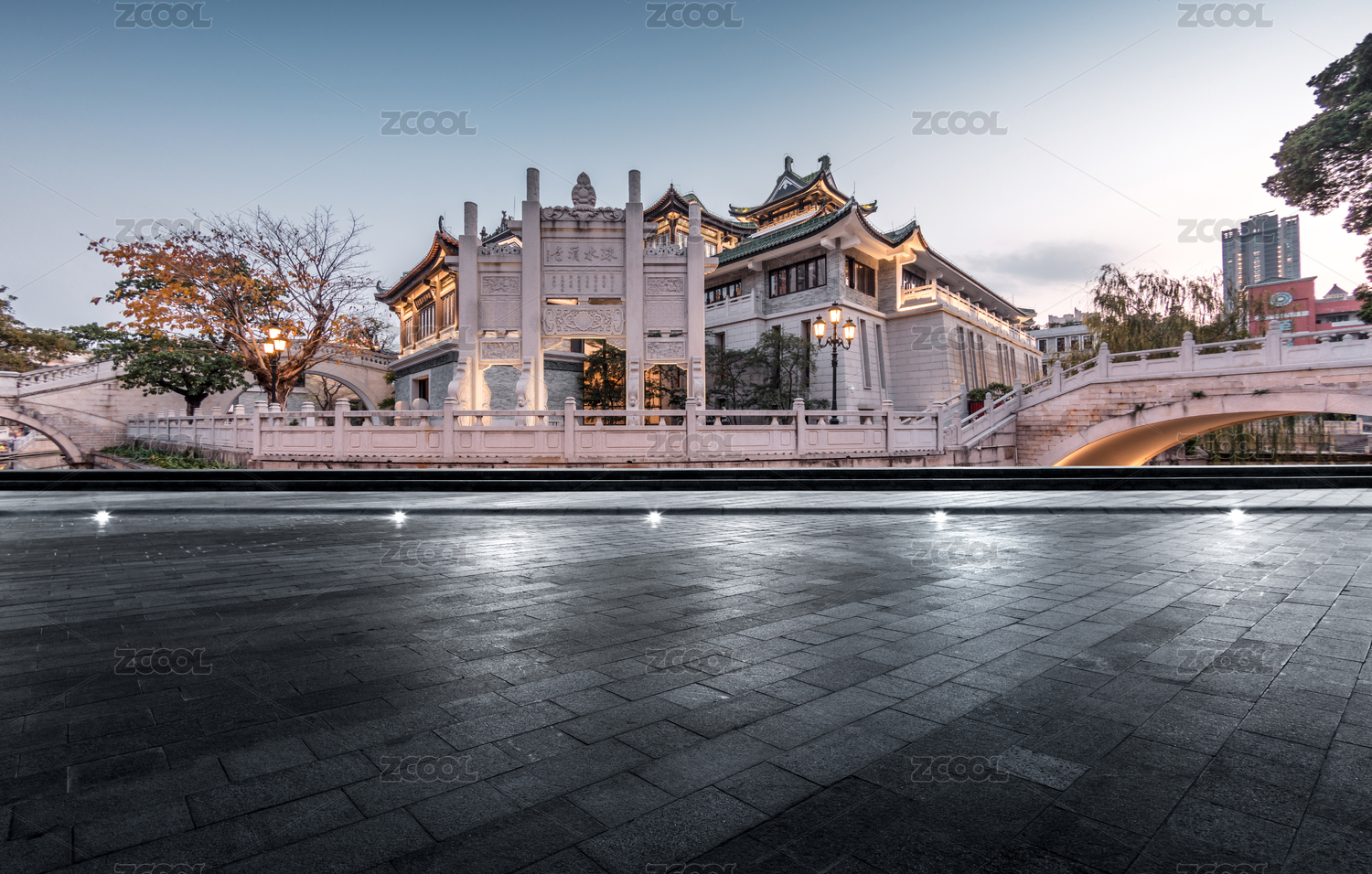 中国广州粤剧艺术博物馆古建筑桥梁景观
