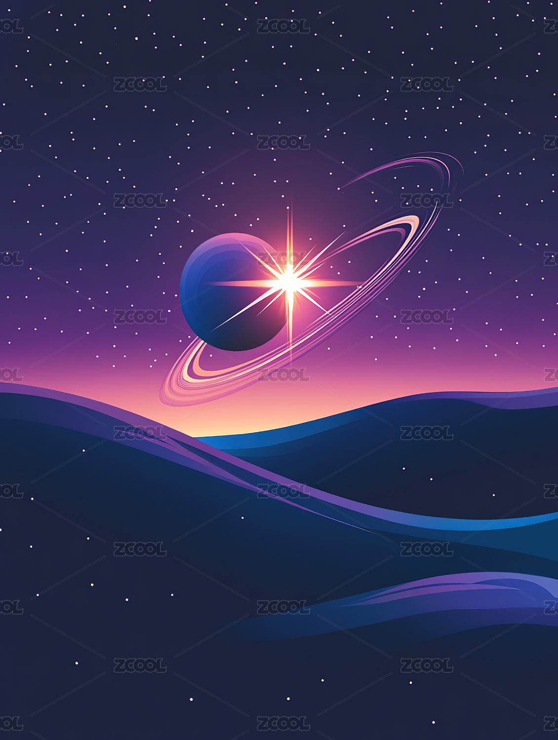 深蓝色背景上渐变星球和太空,卡通行星背景