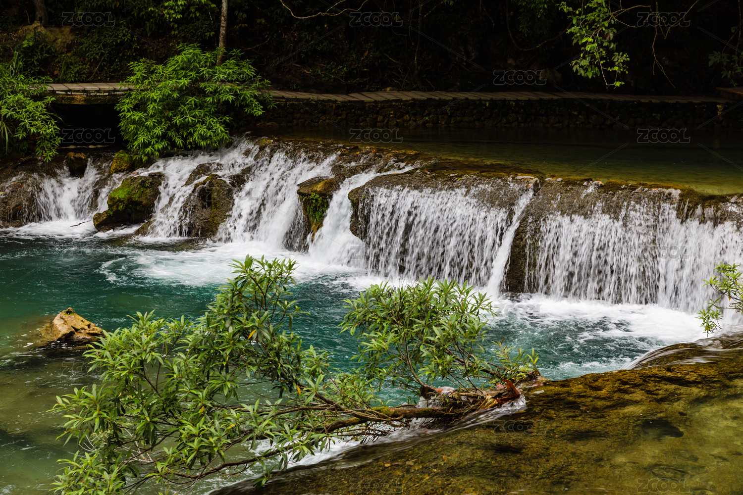 中国贵州黔南荔波小七孔跌水瀑布自然风光