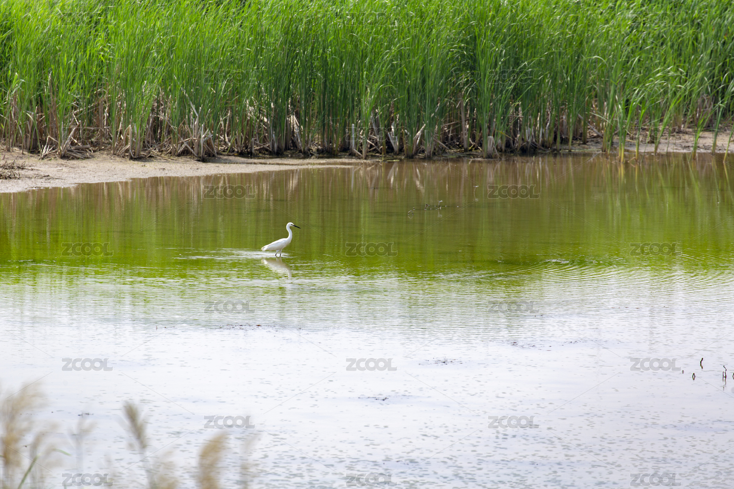 夏季在公园湿地湖泊里栖息觅食的黑水鸡