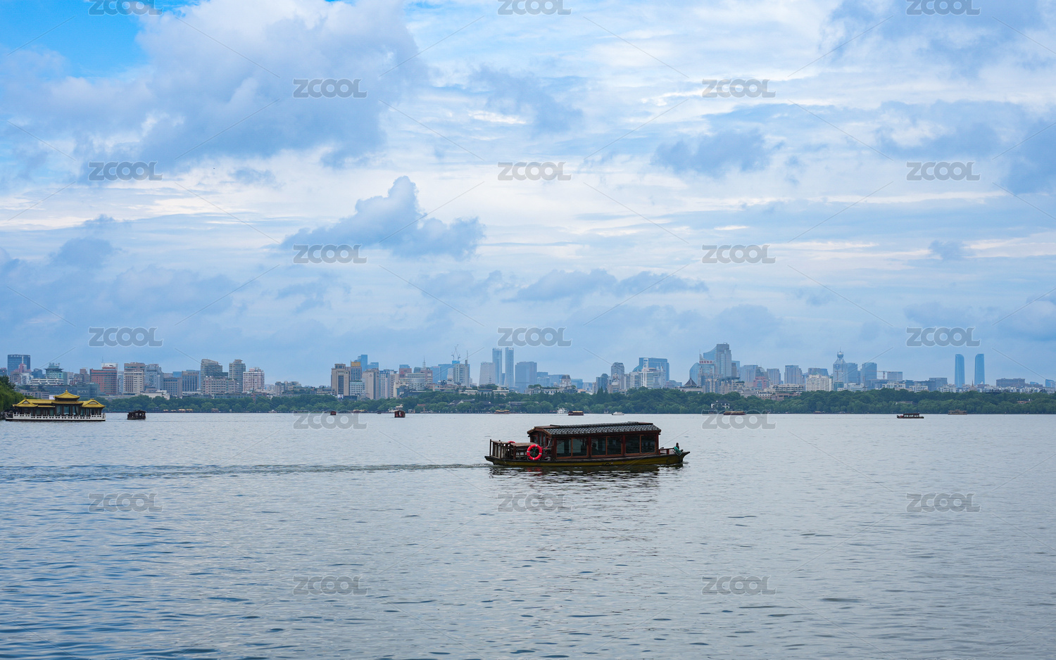 杭州西湖风景与杭州城市天际线