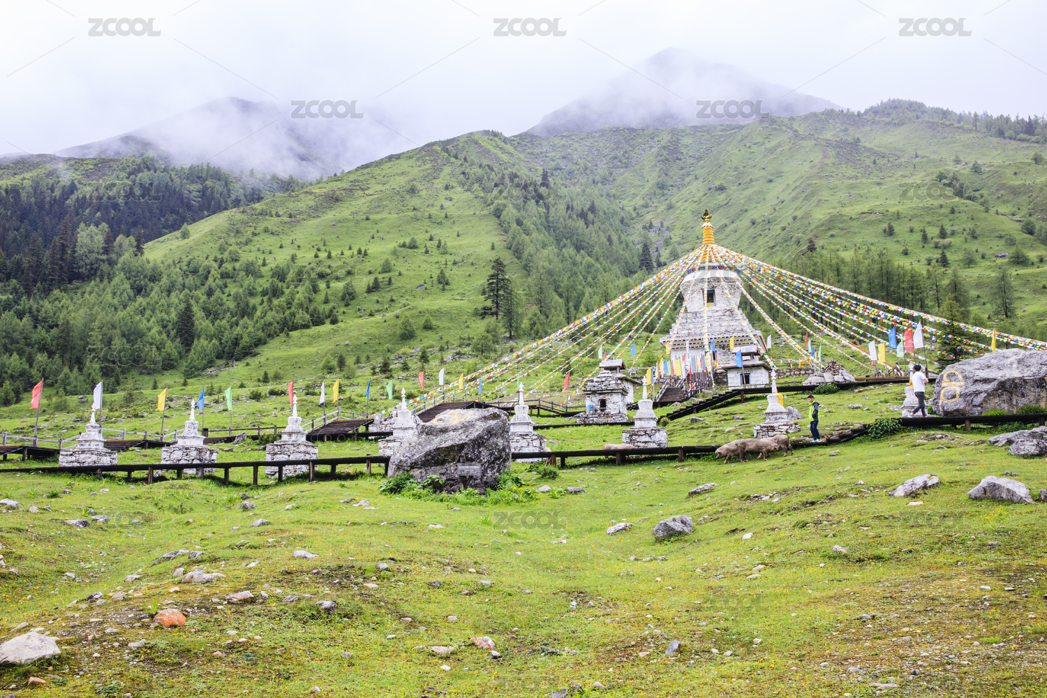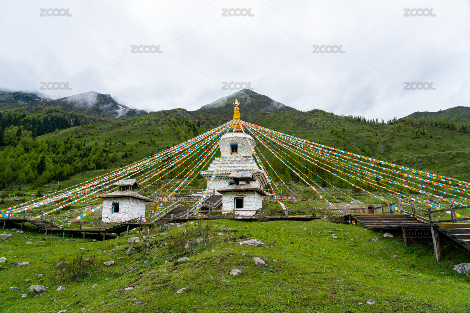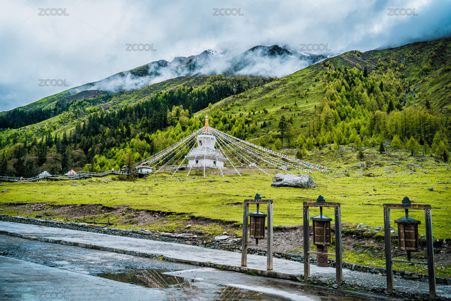 四川四姑娘山双桥沟白塔玛尼石转经筒