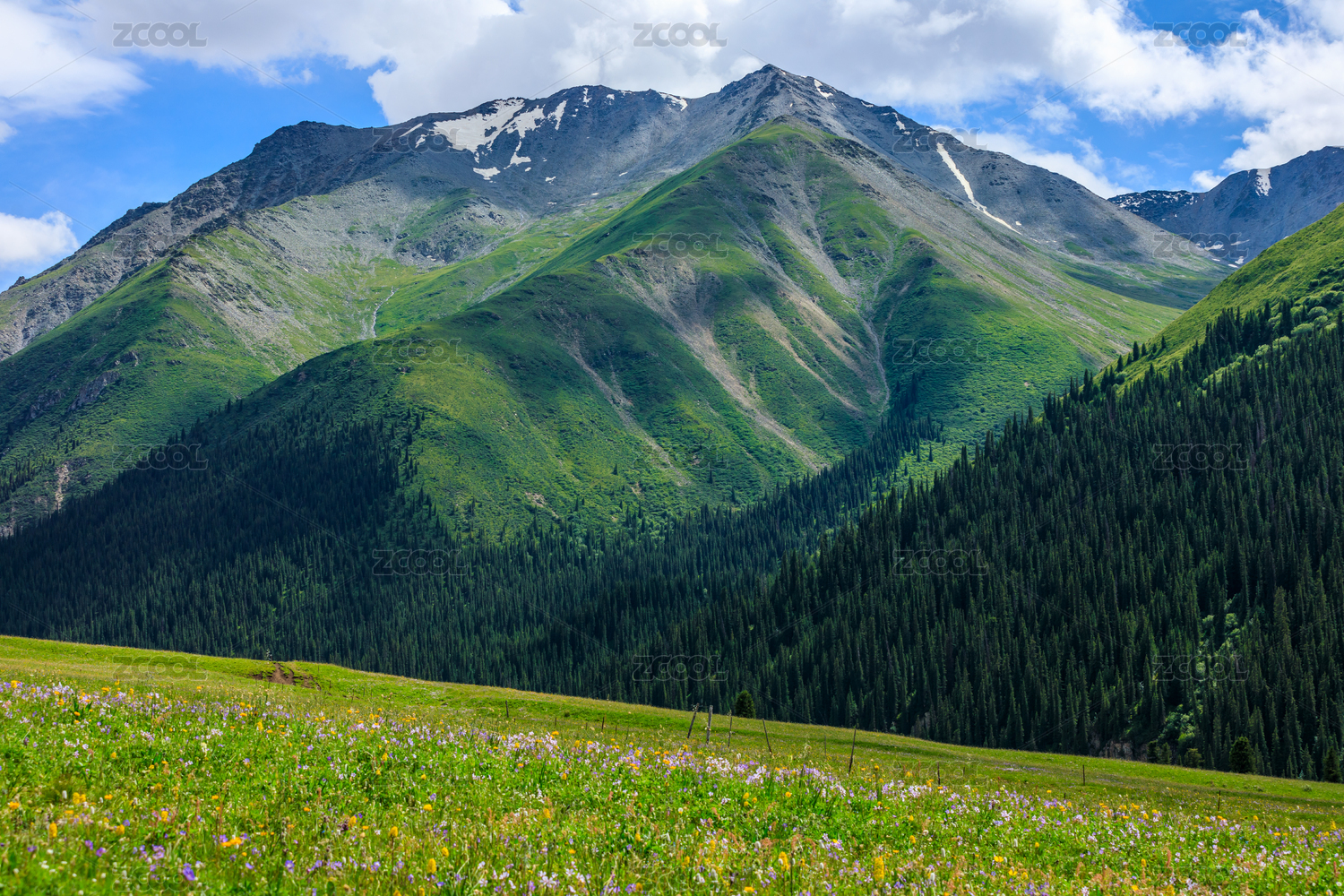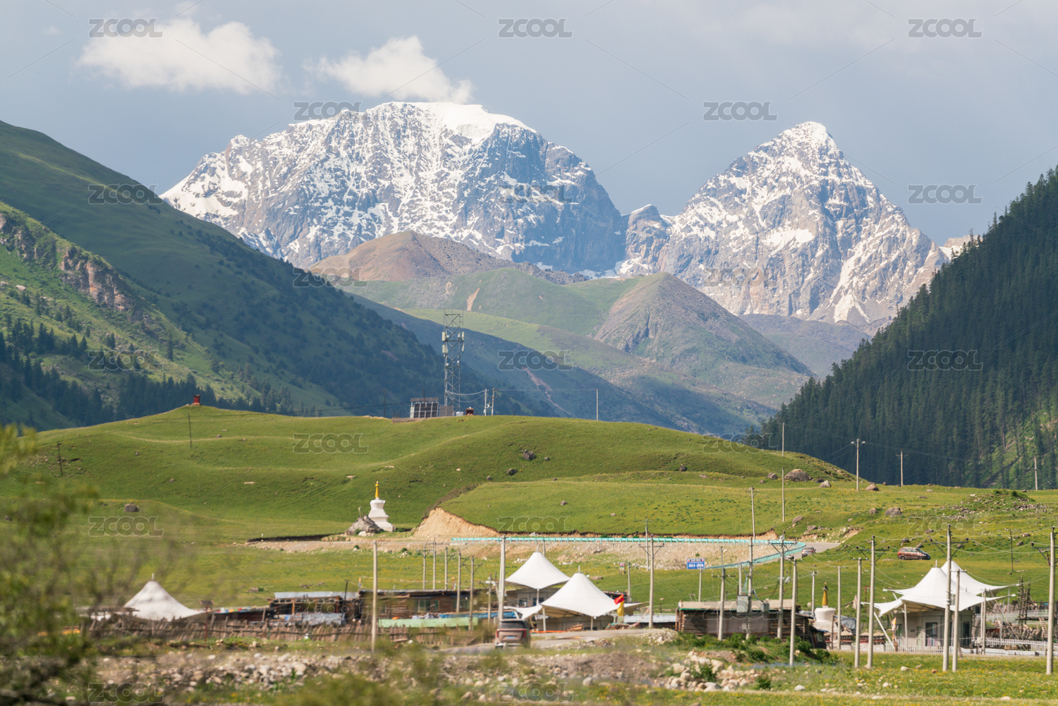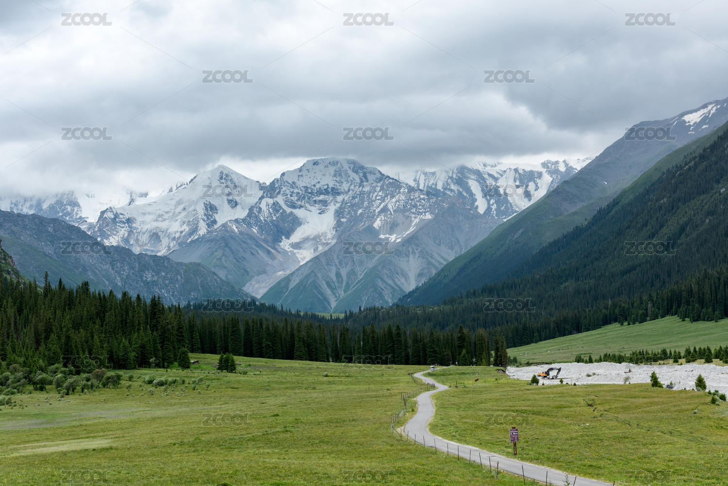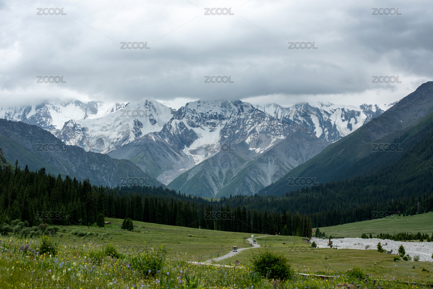 新疆伊犁昭苏夏塔古道草原雪山自然风光
